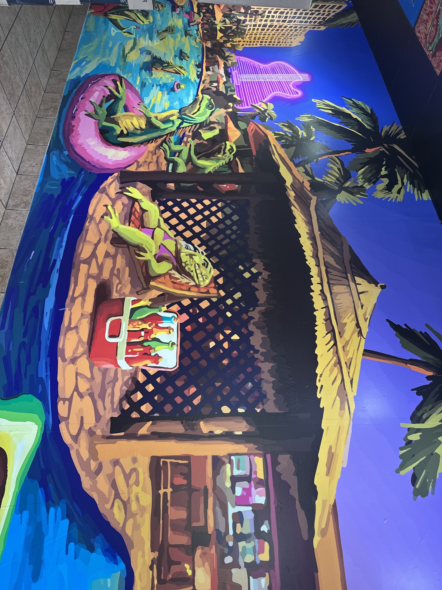Read moreStepping into this place feels like a trip back in time with its Tex-Mex vibe, 90s rock music, and black ceiling. Although there are a few too many tables that were mostly empty, the centerpiece is an impressive hot bar featuring 12 hot sauces that steal the show. The decor is busy but leans into its Hollywood roots with a full-wall poster of vacationing, lizards and the Hard Rock.