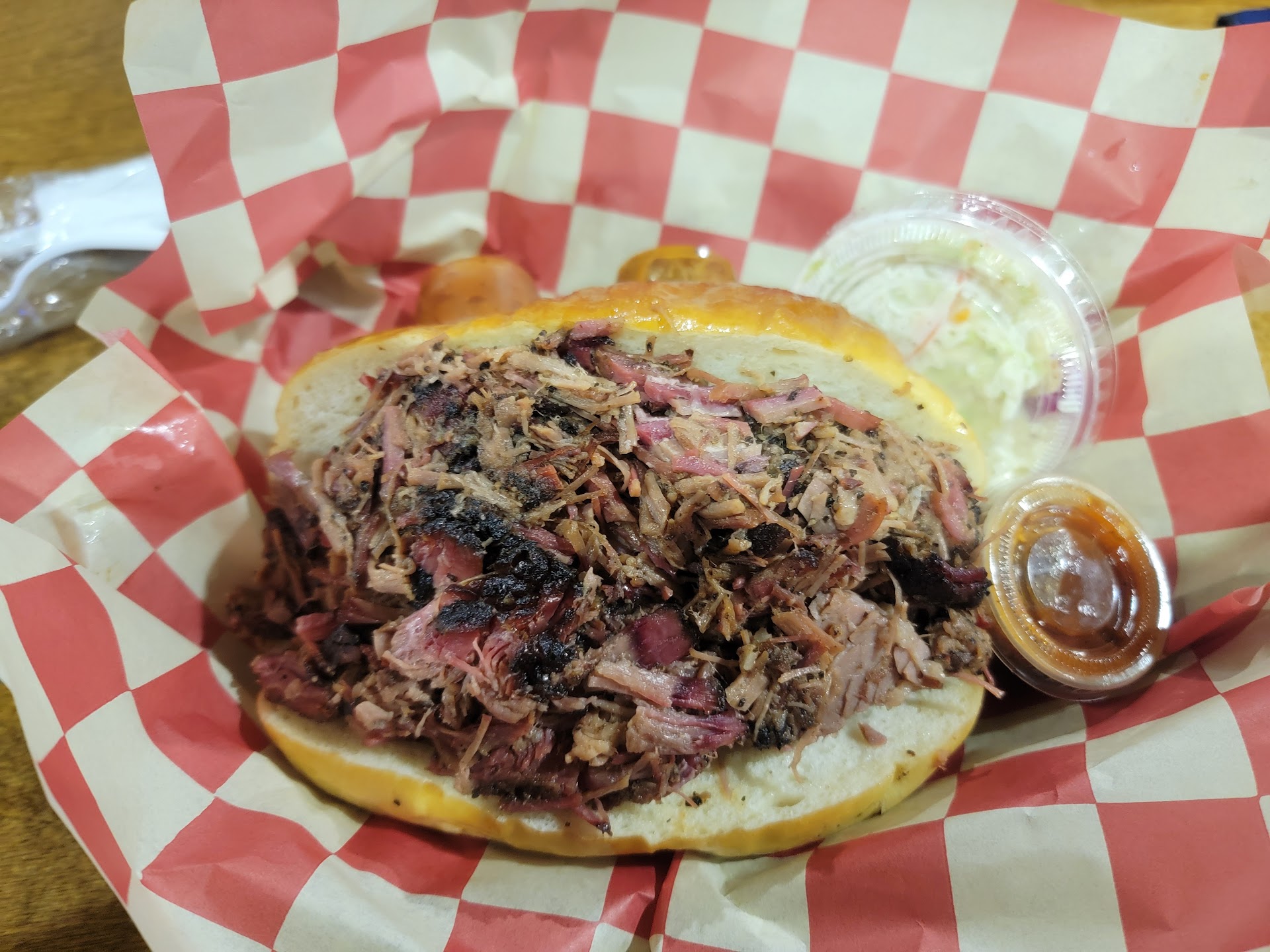 Read moreFirst time at the Yellow Green Market but passed through the Wholly stall and the brisket looked so shiny that i had to come back and try it. They have great menu options and meat options to try. If you want something small do what i did, i got the Brisket n Cheese Arepa and wow! It is stuffed!! Brisket it’s nice and smoky but not overpowering, tender, juicy and good fat balance. The arepa was slightly crunchy and soft not doughy which is good. But the sauce was amazing, the vinegar and acidity in the sauce complements the fatty meat greatly.