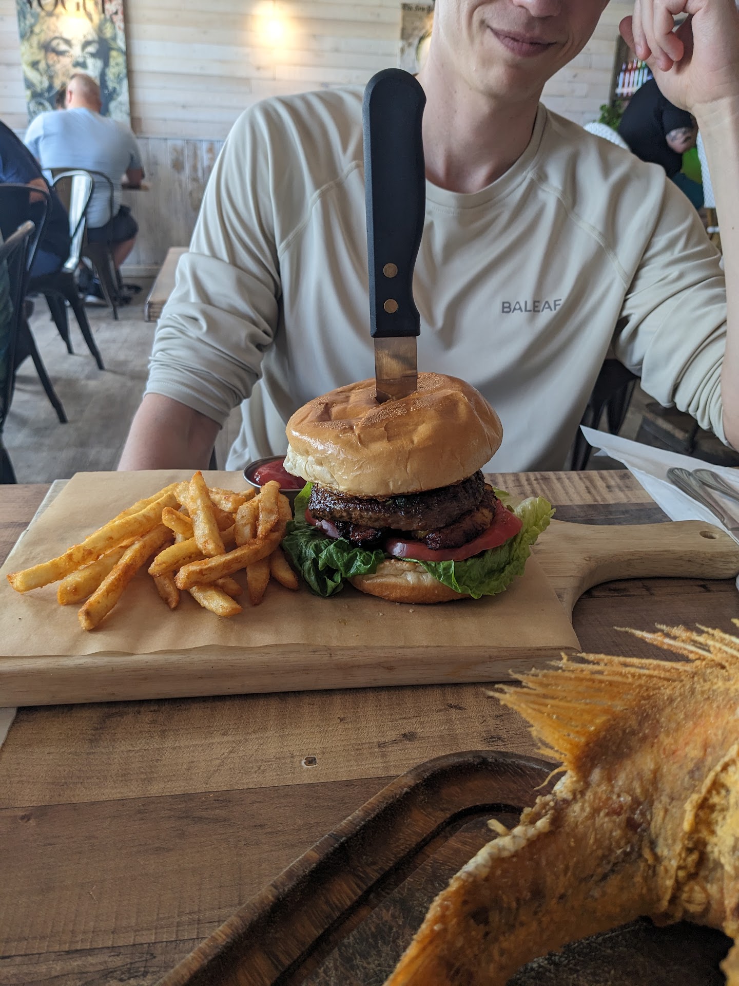 Read moreLooks can be so deceiving! I like that this restaurant is located on the boardwalk, and we love that the atmosphere is very coastal. Our server did a good job taking our order, and we think he 100% deserves his tip. While the food looked amazing and smelled fresh, to our disbelief... it all tasted bland. The burger meat was seasoned only on the surface, so it tasted like Burger King's meat patties. My fish tasted okay. Unfortunately, it was overcooked, and I had to tug on the meat with a fork because the texture was dry and rubbery. The lemon on the side did help with the fish's dryness, but I shouldn't have to compensate for the texture if I am paying for one of the most expensive item on the menu. Our food experience was so hard to accept because everything was plated so beautifully, and we really wanted to believe that what we ate tasted good, but the food was meh. I am so disappointed with the cooks. I just can't believe I paid a premium price for subpar food. Why not lower the price if you aren't going to put out the quality of food? You might as well walk down the boardwalk and a little inland to get better quality food for half the price. Oh, just FYI, this restaurant does an unorthodox practice where they automatically charge you an 18% gratuity tip to your receipt, regardless of how many people are in a party. I was originally going to tip my server 20% (his service was great), but it felt weird to add an additional tip. I would prefer the managers to get rid of that practice or allocate 18% of their food selection prices to go directly towards server's and host's tip share. Maybe then the prices on the menu...
