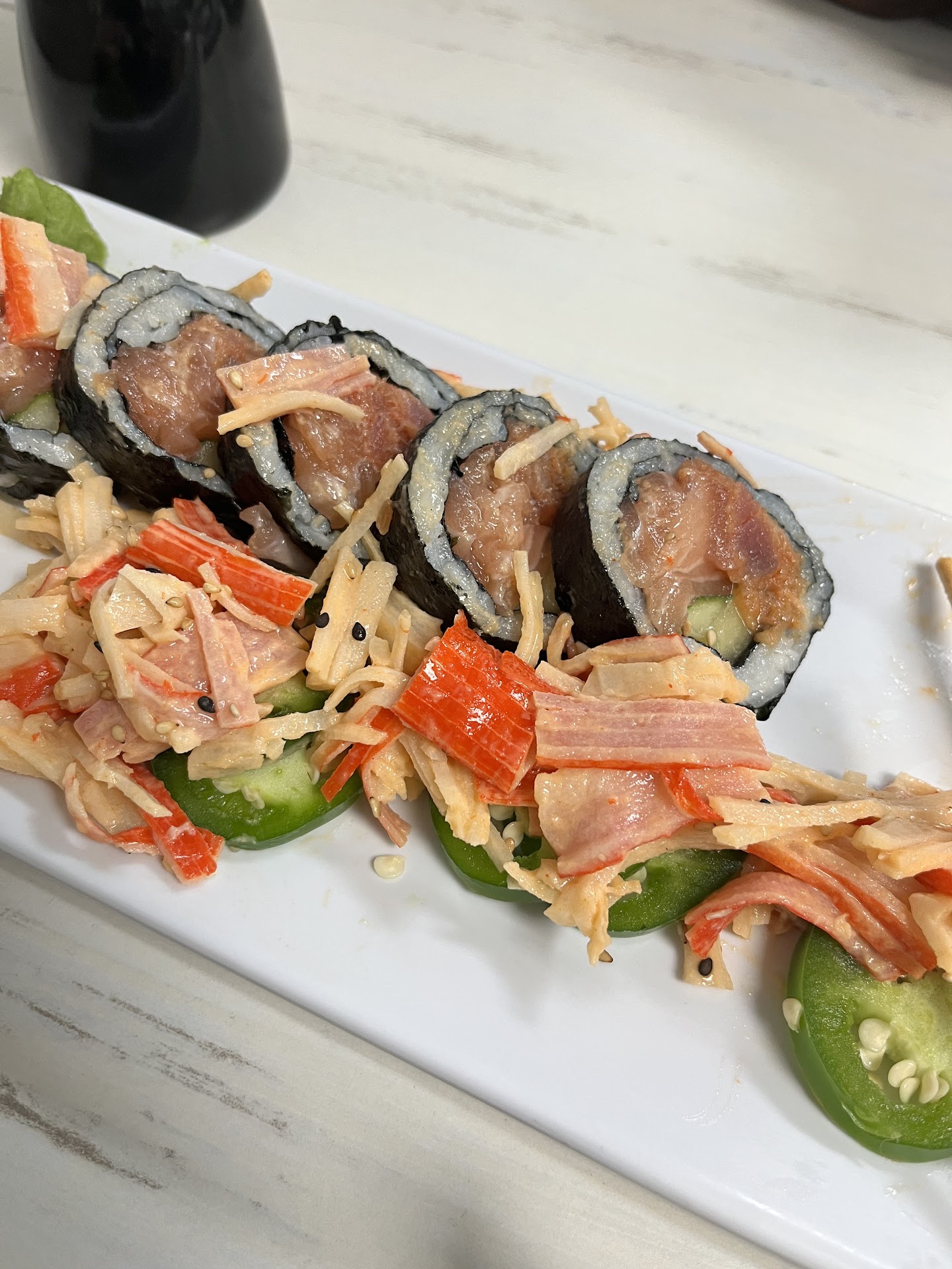 That being said, my only two gripes about this place is that some of their tempura rolls used perhaps a little too much batter or perhaps the tempura batter was slightly off. I ordered the tempura lovers roll and the ricky roll, and the tempura battering on the tempura lovers roll was very thick and almost too chewy, not what im used to. I have been a sushi chef in the past and have worked with many sushi restaurants for years, and there was something definitely off about this roll. However, their ricky roll was amazing, tempura was done well and was crispy and flavorful, so the tempura must have been off with the first roll.
