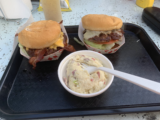 Read moreThis is a tavern. Cash only! Typical rock and roll soundtrack, jovial folks imbibing alcohol at the bar and neon signs glowing with the promise of all that beer can bring. Definitely one of those places to rub elbows with a local crowd. The table was great and the prices were reasonable in comparison with other local eateries. Grab a menu make a selection and walk up to an empty place at the bar if there is one then give the tender your order. The drinks will be passed over the counter and after you return to your table the food will be delivered to you when it has been prepared. It did not take long for the burgers to arrive. They do not have fries but the potato salad was nice maybe the coleslaw would be good as well but we did not order it. The burgers were very good above average to be sure. All around a good experience even for this...