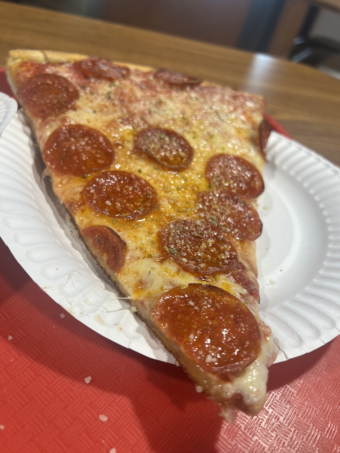 Read moreNot bad, but the prices are a bit much. I dropped 28 bucks for two slices, wings and a drink. The slices are giant, so they got that going for them. I probably could have made a meal out of one slice because the crust was more dense than I expected. Dense, chewy crust that actually gave my damn jaw a workout. Slices were fine, lacked a bit of flavor even with added garlic salt and oregano.