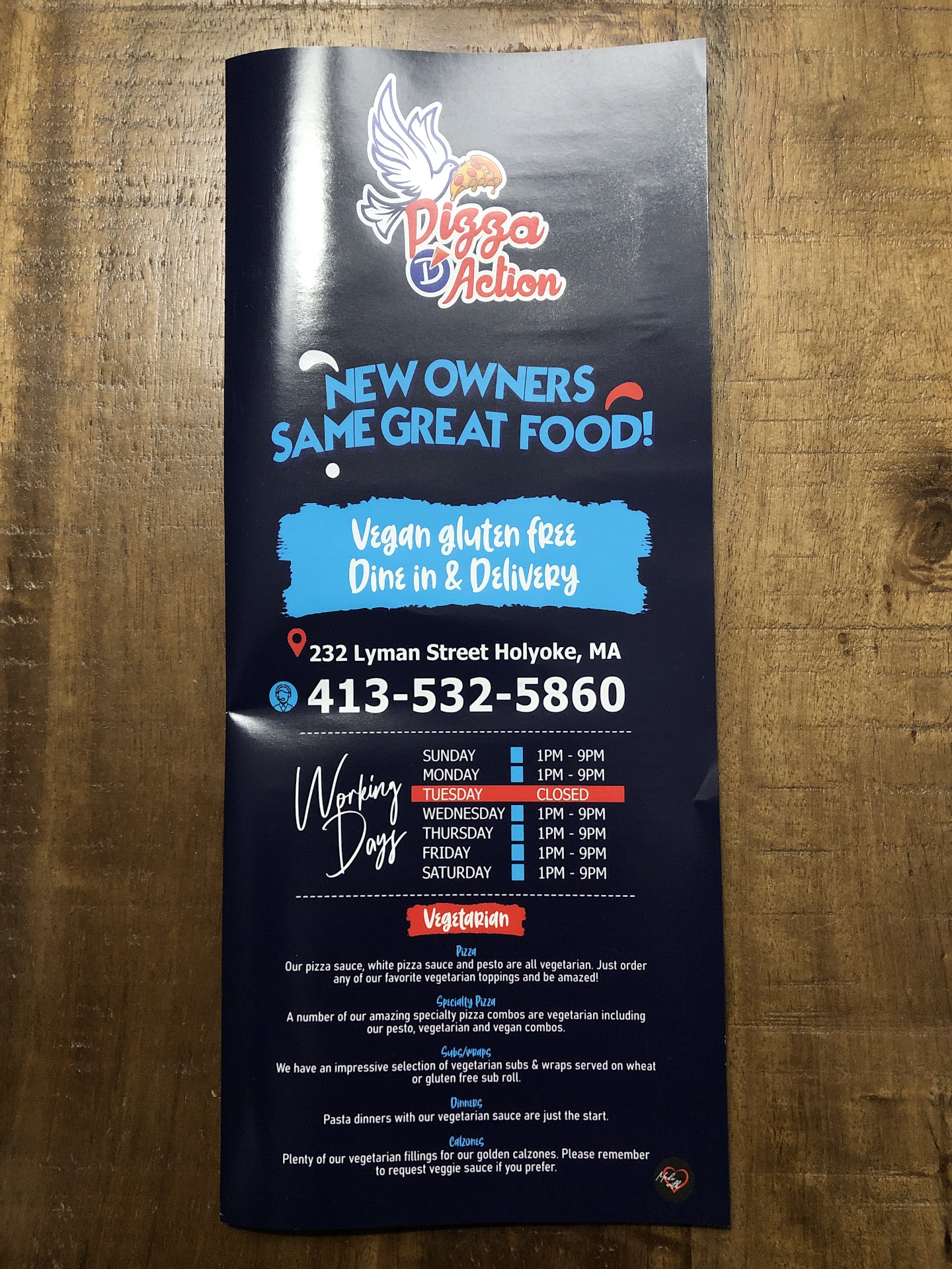 ————— (Original review in June 2023): Things have definitely changed with the new owners. The biggest issue is that today was the THIRD time in the past month that I called during the hours stated on their new menu. The menu says they open at 11:00 today. I called at 1:30 and no one answered. As I drove by to go to a different lunch place, I saw Pizza D’Action was closed. I want to support them but I can’t even get lunch.