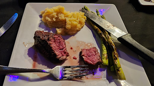 Read moreWell.... we walked in and asked for a table for 3, he said "name?". When I said we didn't have a reservation he growled at me in frustration. WOAH!! We are tourists in a tourist town during peak season, we did not know to make a reservation. But he found a spot for us. The server congratulated us on a great table/booth which was very uncomfortable and not made for more than two people. So my knees were bumping the other two the whole time. I have been to "fine dinning" places and never served water from a mason jar there! The prices were high, which we expected, but it was not worth it!! The server, as he was taking our order, said "this is going to take a long time to prepare so do you want to add a salad or soup".... add it??? Correct.... the steak dinners came with a veggie and mashed potatoes for $45-$60 each. No salad or bread either. So there we sat for 75 minutes waiting on our food. Not all the tables were full and the place wasn't even that big so what in the world could have taken that long???? By now I'm thinking, this better be some amazing steak.... well mine was overcooked and dried out. The husband and sons steak was cooked less than what they wanted so underdone. There wasn't a lot of flavor or seasoning so they were dipping this $50 steak in A1 sauce. I had better steak the night before on the spit for half the price. Total bill came to $175 for 3 people (3 streak dinners, a side of grilled shrimp...