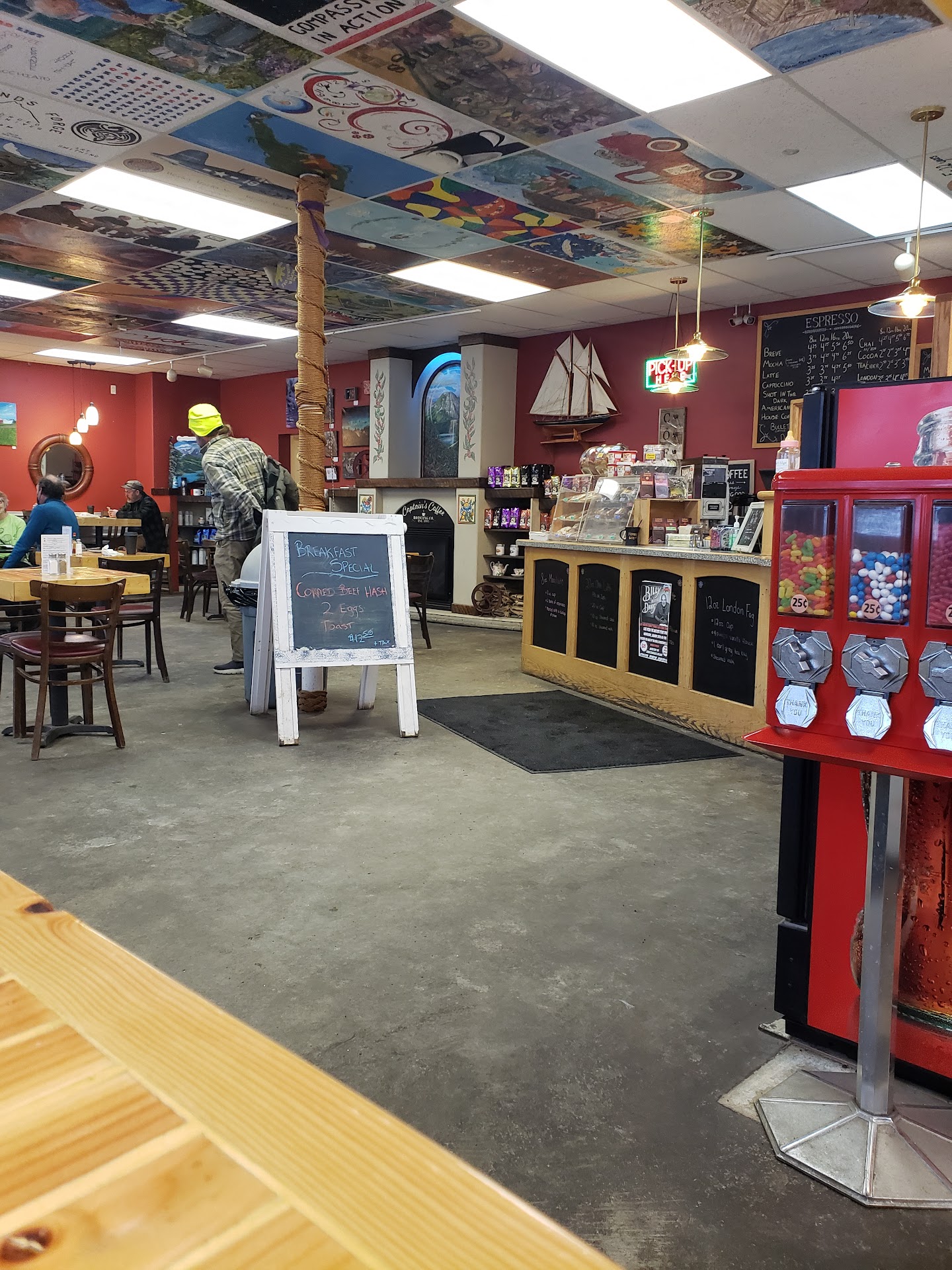 So we decided to eat elsewhere and just got coffee here, which was actually very good and went well with our Bagel sandwichs we got down the road. Would like to try the food here someday, as long as they don't mind scrambling an egg for my wife. Maybe...