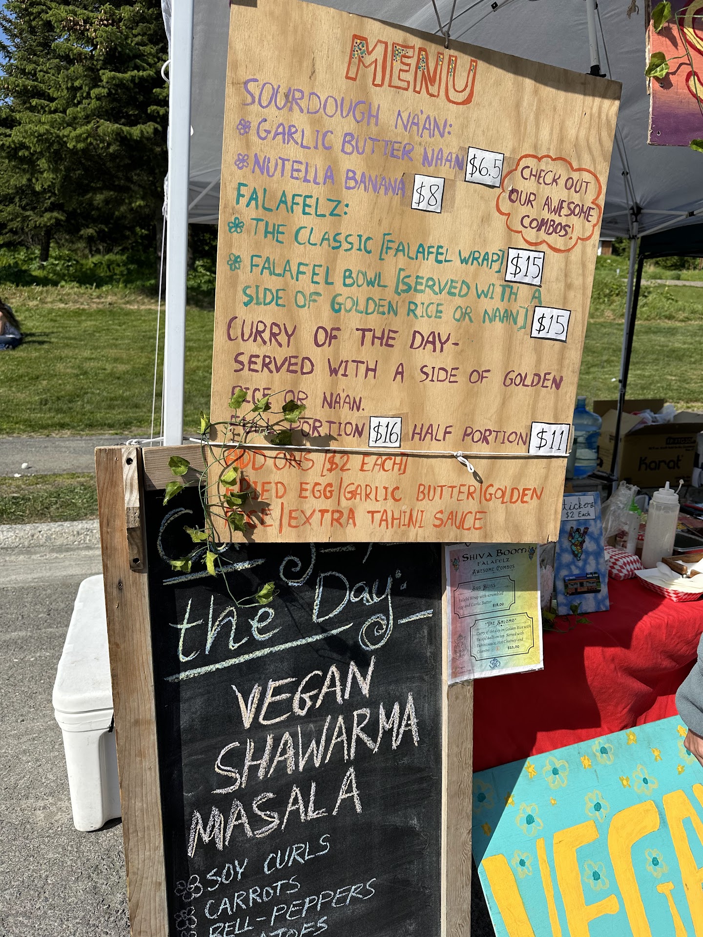 OMG Y'ALL Eat. Here. Now. My friend and I were visiting from Anchorage. Every good place we found online turned out to be closed. We were hungry. Finally, only by accident, I saw someone from Anchorage mention Shiva Boom. We figured they would be closed and/or icky. It was the BEST meal we've had all year. Holy donuts!! We had the samosas, falafel wrap (homemade sourdough naan! what!), and special of the day (one of the best channa masalas I've ever had) and coconut rice. I love to eat, I'm a professional chef, I travel a lot...and the place blew me away. We took our dog's car blanket into the beautiful little meadow behind the truck and ate there, next to the garden. You could tell everything was made from scratch by someone who knew how to handle food. We tasted cinnamon, turmeric, cardamom, coriander, cumin, and chilies. The samosas were crispy, fried to order, and full of the most amazing melt-in-your-mouth potato filling I've ever had. The channa masala had layers of flavor. And fresh falafel! Homemade, cooked to order! In homemade fresh sourdough naan! Sorry! For all the exclamation points! Service was warm, friendly, and fast. Large portions. Everything was very clean. All our food came to $38. Indian food of this quality would have cost twice that in a place like L.A. (and you wouldn't eat in a meadow with a view of the mountains). I can't...