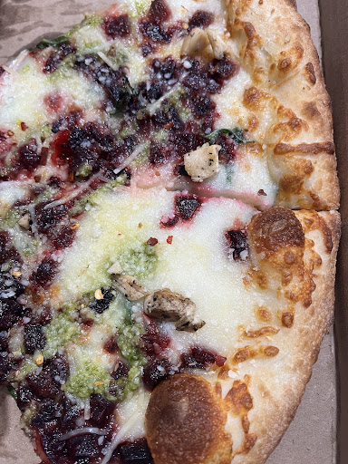 We had the shrimp appetizer and it was great. Came with a lovely little green salad, very fresh, and their homemade blue cheese dressing on the side. I had a red blend per my question and the sweet waitressās suggestion. It was a good pairing wine; fruit forward, jammy, and held up to the pizza. We tried two different pizzas, both to our satisfaction. They do a great crust IMO; stretchy, chewy, and not too thick. My pesto sauce, roasted beet and chicken, and arugula pizza was fantastic. Iām sure it was superb with goat cheese too, but due to an allergy, I asked her to change to mozzarella and they were kind to accommodate.