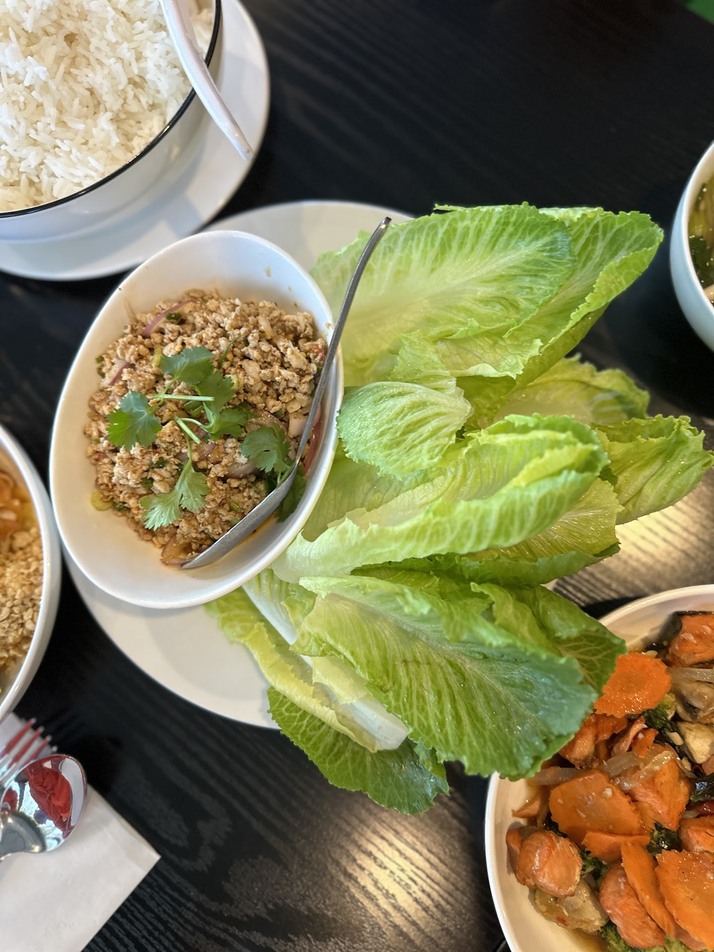 Vibe: The interior has some lovely traditional Thai decor, but overall the atmosphere felt a little sparse. Some background music or more intentional ambiance would really help bring the space to life. It’s got potential but could use a bit more flavor in the vibe department.