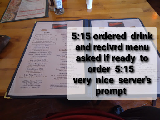 Read moreWaited 15 Min to be seated. Not bad. Then waited 10 minutes to have our order taken, not too bad, but from that point it took an hour and 10 min before we got our food. The server was awesome checking on us regularly and giving updates on our food's arrival. However her estimates were way off. About 20 min in she offered us a basket of peanuts for our patients and kindness. A whike later she offered a some popcorn. I'm Alergic but still a nice jester. Then a while later she offered some clam chowder. I not a fan but again very nice of hervto offer. . She said our food was the next ticket and it would be worth the wait. That they had a rush in the dining area and apologized. The food arrived 70 min after we ordered and it was the worse meal we have had in a long time. My husband ordered the perch basket and I ordered the boneless Buffalo strips basket with blue cheese dressing. The chicken was dry and tough, the fries wilted, the fish overcooked and oily. The blue cheese dressing was tangy like range but it wasn't ranch and had no resemblance of blue cheese, not in taste, site or consistency. It may have been an off night but we are not...