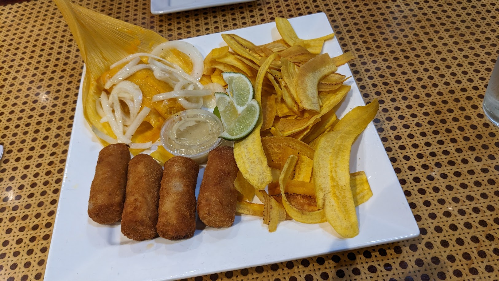 Then I got the Combo Criollo (4 ham croquettes, one cuban tamal and mariquitas). These croquettes were oh so ooey gooey and very crispy on the outside, not too oily. The tamal was very soft and not dry at all, a subtle flavor throughout paired with the bite of that onion, very good. And then the mariquitas were fun, always fun. Crispy. Save them to eat with every other aspect of your meal.