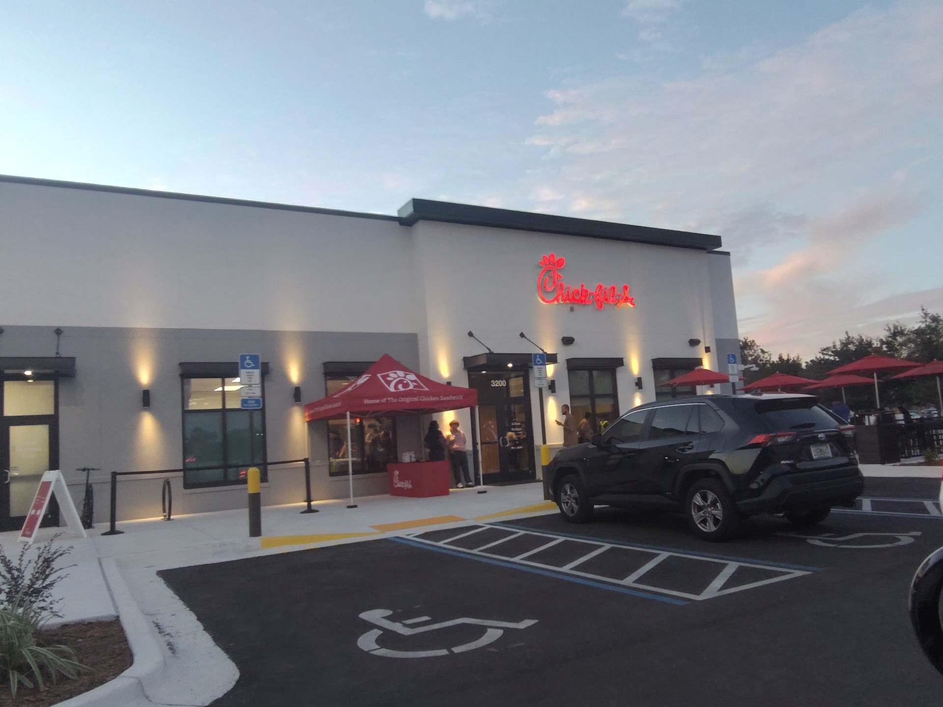 Wow! Horrible location. Employee taking my order did not listen at all just worried about her upselling script. Did not listen to my order or my wifes. And we got the wrong food because of it. Fries were cold and hard What appeard to be the generañ manager was running around empting garbage and going in. And out of the kitchen and bringing out food but never wahed his hands. Hand sink is in view of dinging room. All other employees standing around laughing and talking. Zero management or deligation or direction given to employees. Just gm running around like he was over whelmed. We were there 1 hour before closing they were not busy. All employees with long hair in kitchen and service staff and none of them wareing a hat or hair net. Food sucked. I love chick fila fries and sweet tea. And it qas not like any chick fila i have ever eaten. Sweet tea had so little sugar it qas not proper. 10 fries cold and hard. Floors and hole place so dirty it was unbelievable. All employees standing around. And I had to wipe down the table. Finally decided to talk to gm because i could not eat fries or drink the tea and was not what i ordered. He did not care at all. He was defensive and started questioning me. CRAZY. Never will i go here ever again. And i live right here. All these issues fall on the horrible GM. This place sucks. Dont waste...