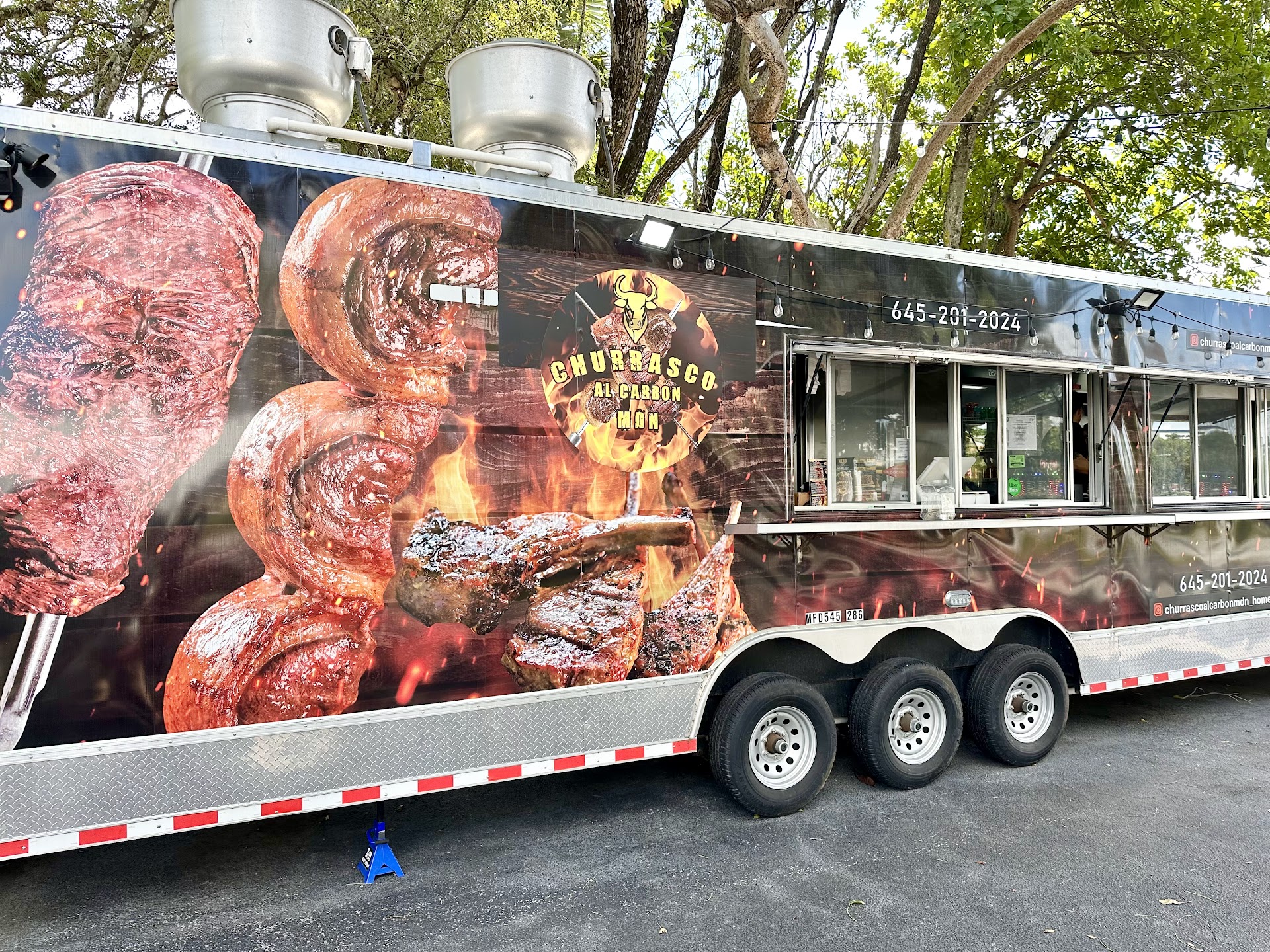 My family and I came to this place expecting good food knowing it's a food truck, most of the time food trucks always have great quality food. We ordered a "3 LB tabla" which is a little variety of everything including 2 sides, no joke, the only good thing was the fries expecting this to be Brazilian owned, wouldn't you guess? There's a cubaton playing and they were Cubans working, not Brazilians. The meat was very dry, we ordered it medium rare, they cooked it so well I needed a drink to wash it down. The rice was poor quality, everything was just bad. The service was okay, but all they had to say was "Sorry sir." Well, sorry, but that's not going to cut it, especially since we're spending 100 dollars. Everything is good. I won't make that mistake again. The flies were also unbearable....