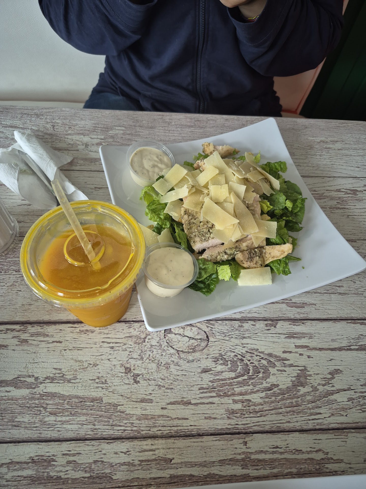 We ate here twice this week. The photos are from the first meal. The chicken caprese sandwich was delicious. May I suggest that you julienne the basil? Whole basil leaves can be difficult to bite through. Also, I had many bites with no basil. My only complaint was that the tomato was not ripe and was a very thin slice. The beet potato salad is a beautiful touch and is very good. My daughter had a grilled chicken Caesar and was very happy with it. Another handful of romaine wouldn't hurt, though. The mango passionfruit juice mix was delicious. On our second visit today, I got the Cuban panini and balsamic tomatoes. The tomatoes were pretty good, but not a particularly strong balsamic flavor. Honestly, that may be fine for most people, as I have a crazy love for balsamic vinegar. The Cuban had waaaaayyy too much yellow mustard on it. It was all I could taste. After scraping off a teaspoon or more of mustard, it was edible. The meats and cheese were good, just please take it easy on the mustard. Customers can always add more if they want. Finally, if you ask for water to drink, it's served warm with no ice. All in all, a clean, healthy, friendly option in Homestead, which is appreciated and welcomed! We...