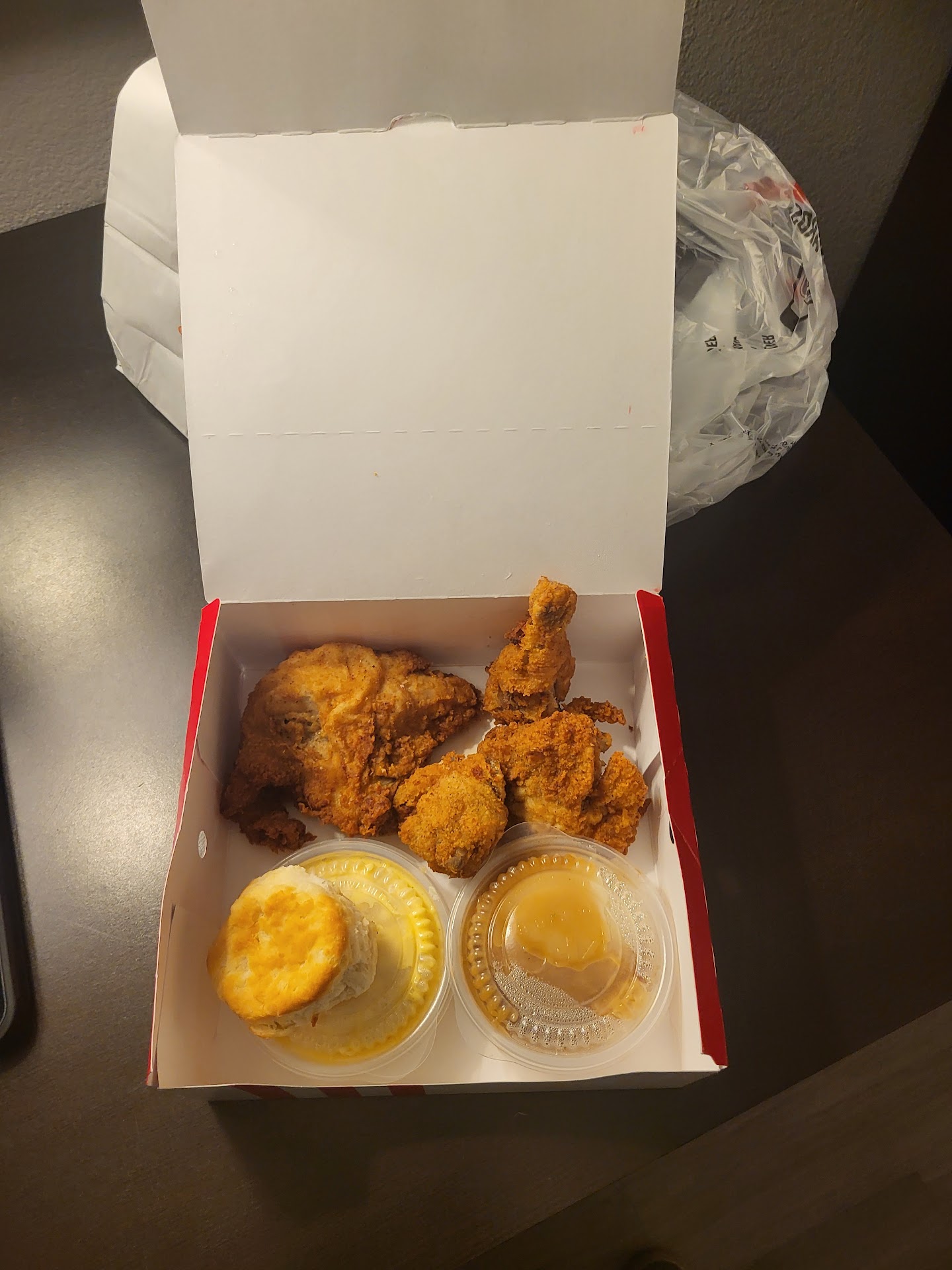 Ā Ā Ā Read moreThis has got to be the saddest and most disappointed dinner I have ever had! For everyone who comes to this part of florida DO NOT DINE HERE! Pictures. Will show what $19.27 buys you here IT DOES NOT MATCH THE PICTURE THEY HAVE ON THE MENU!!! I placed the chicken near a fork for comparison. The gentleman who took my order was Professional but the rest of the staff are zombies You are not greeted when you walk in And they do not hand you your food.They throw it on the counter Well k f c this will be the last time I dined in...