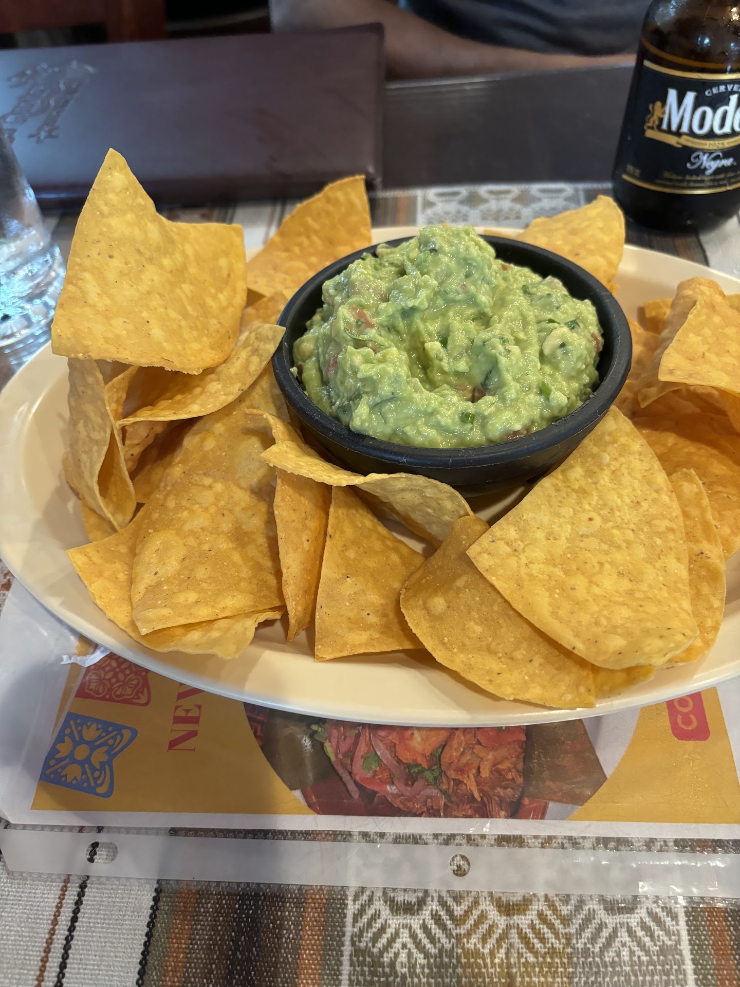 Tacos were bland and tasteless, the meat was mixed with little bits of onions and cilantro. NO lettuce, NO cheese, NO guacamole, NO sour cream. We asked for sour cream and guacamole for the tacos. We discovered when we got the bill they charged $2.50 for sour cream and $3.50 for guacamole for tiny spit cups!! đ