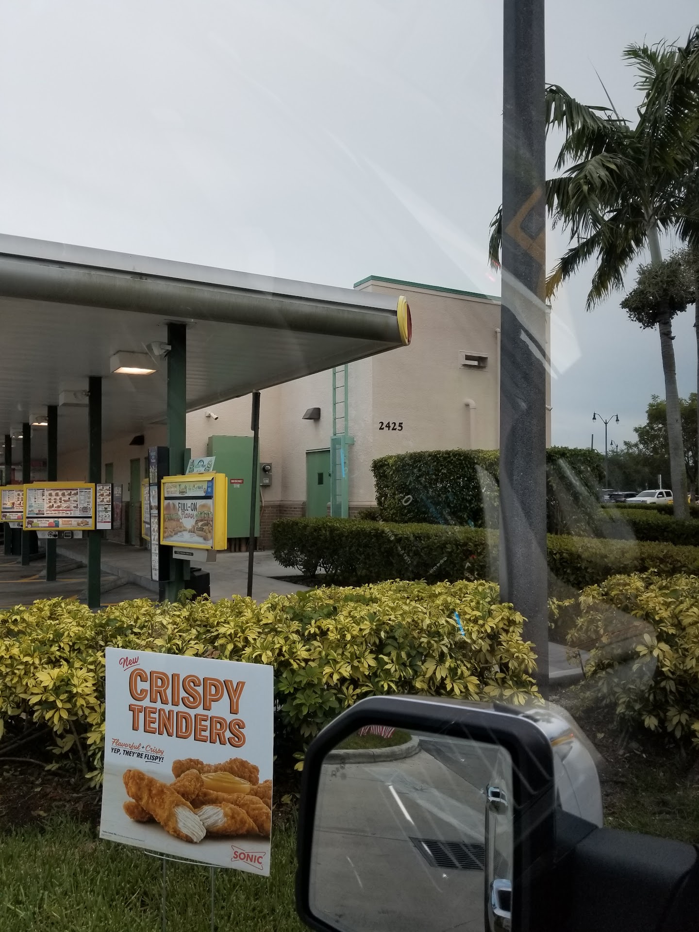 I went here for the first time today. I haven’t been to a Sonic in Florida. I’ve visited them in other states. We live about a 25 minute drive from here. We decided to have a special date and drive down. My daughter wanted to eat the food at home so we went through the drive through.