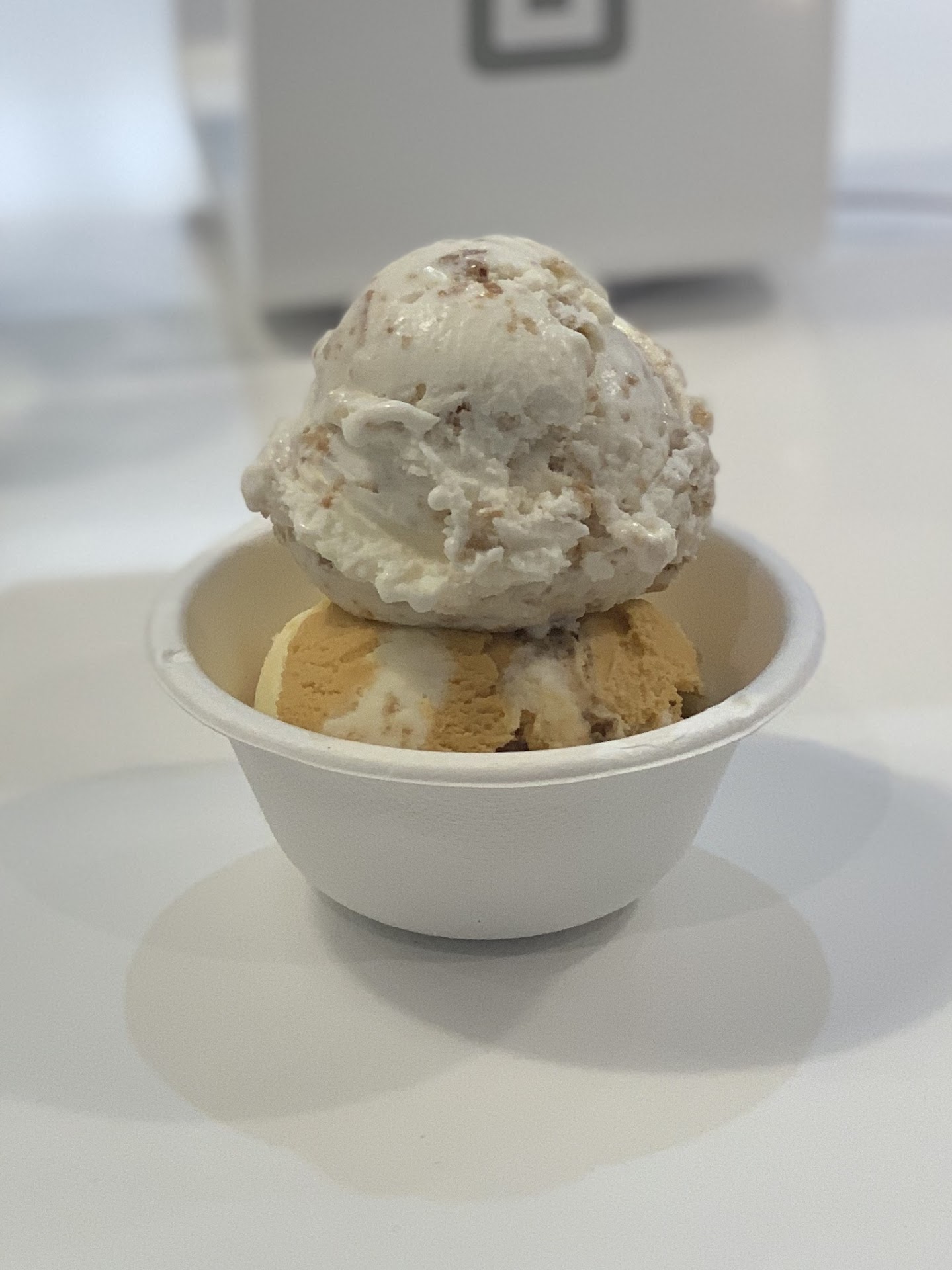 Located in the Edgewood neighborhood of Homewood is a contemporary ice cream shop serving delicious and unique flavors of ice cream. Free parking directly in front of the store or you can find free public parking lots in walking distance. You can get free samples before you place your order. There are tables and chairs inside if you want to dine in. If you're lactose intolerant and don't want the vegan option, they have complimentary lactaid pills at the register. First time seeing this at an ice cream shop and love it!! There is also case with ice cream sandwiches and pints. After sampling four flavors I decided to order a banana split to go. The bananas are bruleed, and you can choose two scoops of ice cream. It's also served with a pineapple passion fruit compote, graham crumble, and vanilla whipped cream. My split was missing the cherry, but it was totally ok because I'm not a fan of amarena cherries. The dessert was $13.20 with tax. I selected a scoop of arroz con leche ice cream and a scoop of passionfruit chiffon for my banana split. It was so yummy! I wasn't a fan of the pineapple passion fruit compote but the bruleed bananas and the ice cream I selected with the vanilla whip cream was 10/10. Definitely recommend you stop for a cold treat. Smooth velvety texture, unique flavors, good service and the flavors...