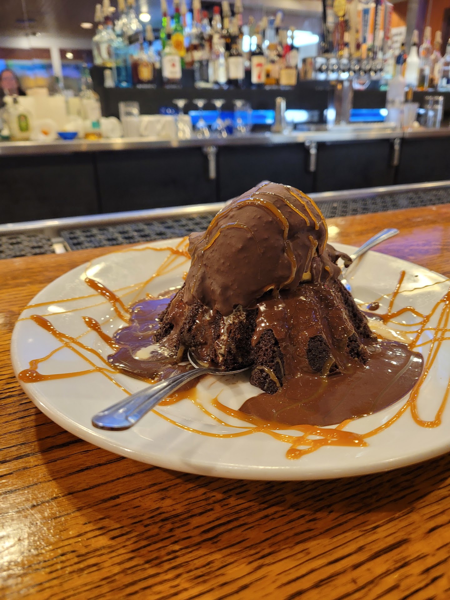 Dessert portion of our 2 for 25 was the cookie. Ice cream was served as soup in a bowl. Apparently their freezer was broken. We should have been informed of this beforehand. The cookie... wow. Paper wrapping on the bottom of the cookie.
