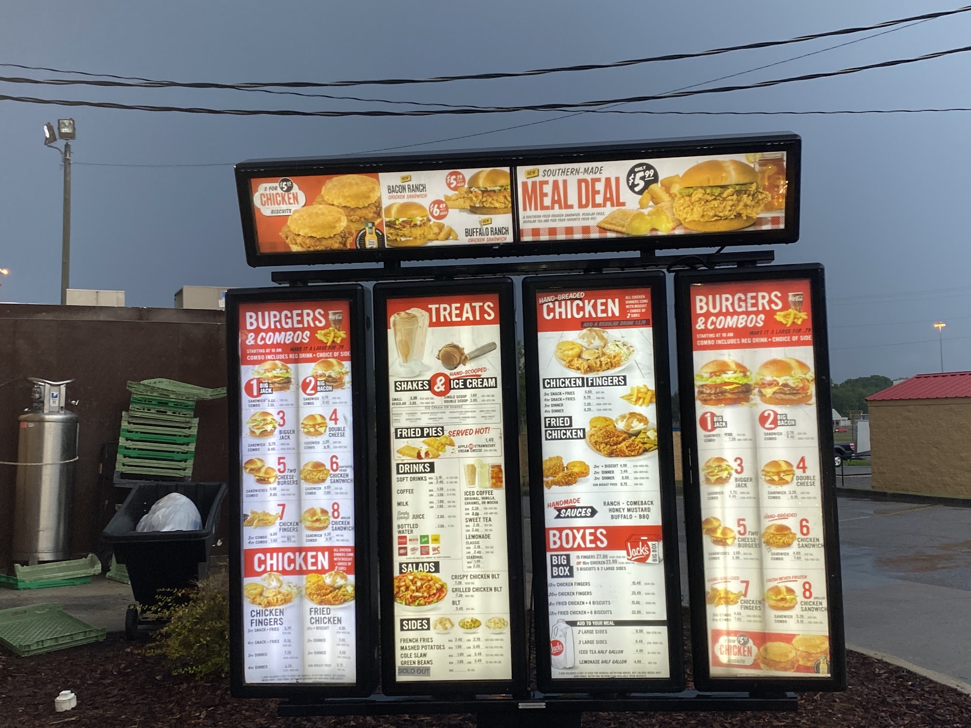 Walked in, and no one was in line. It was not a dinner rush time, though the place looked pretty fully staffed. My family and I had never eaten at Jack's before, so we were taking a minute to study the menu. I offered a woman who came in after us to go on ahead. She ordered what seemed to be a couple of kids' meals and a meal for herself. The man (the manager, I believe) was polite, but she had to repeat various parts of a pretty simple order over and over again while he punched it into the machine. After she finished, we took a step forward. And waited... watched the manager and staff scramble around rather without any efficiency or direction. They were filling drive through orders, but slowly. Eventually, they seemed to be working on the woman ahead of us' order. They also began working on a door dash order. The whole time, we are standing at the counter, unacknowledged, and waiting to place an order. Eventually we realized (using a text that was sent when we had arrived in the parking lot as a time stamp) that we had stood there at register waiting to be acknowledged or place an order for over 20 minutes, going on 30. The woman ahead of us was still waiting for her food. The door dash driver was waiting for half her order.... We decided to leave at that point. It seemed to me that the manager (a tall man) seemed nice enough, but was way in over his head and maybe hadn't been in that position long or hadn't been trained. The rest of the staff either seemed to be frantic and untrained, desperate and failing to get tasks done with not rhyme or reason to the order of how things should be handled, or the others seemed tired, unbothered and unphased, just slowly doing a single task and not worried about anything else going on. It was definitely the most bizarre experience I've had in a "Fast" food restaurant ever (even taking account of the fact that I've been in many understaffed establishments that were clearly running at a...