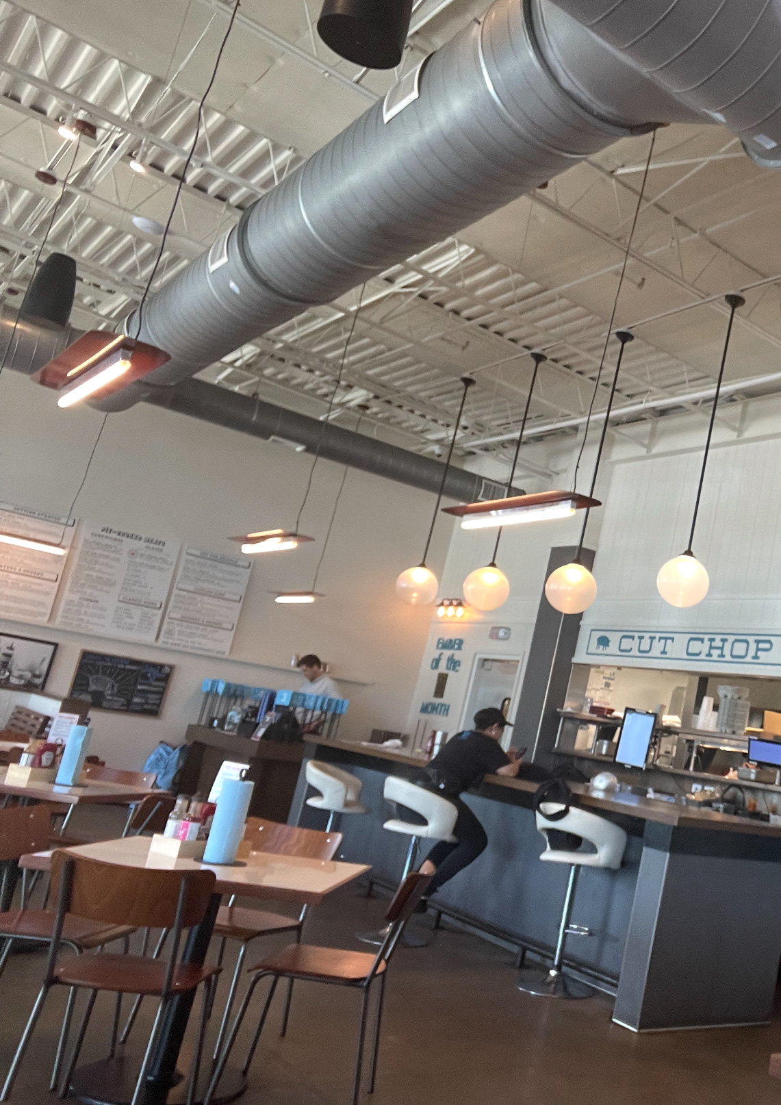 My husband and I sat at the bar. The bartender/server seemed to be the only one working. She wasnāt the only worker thereā¦there were at least 5. She was just the only one actually WORKING, so I get why she was a bit grumpy. The other people there were just sitting and standing around talking. We felt bad for her. We came in because we saw an a special on Instagram for $2 drafts and $1 wings. She didnāt know about the special -3 of the 5 beer taps were empty, so there were only 2 beers choices. Sunday afternoon during football season, every tv was on womenās volleyball Music blasting and competing with the volleyball. Not a mix of various types of music either, but instead a stream of really bad R&B. The employee cups, yeti, purses and backpacks were what got me. (See images) The two girls and one guy at the order counter had their items spread out all over that counter. At one time there was a backpack, a purse, a bag, a jacket a Yeti and two of their drink cups. Itās a food service counter. Gross! The bartenders purse and yeti cup were on full display on the back bar which was a mess and had more half used cups. Again, see pics. At one point a manager type person with a brief case went to the register and then exited the restaurant unmoved by the loitering employees and cups.