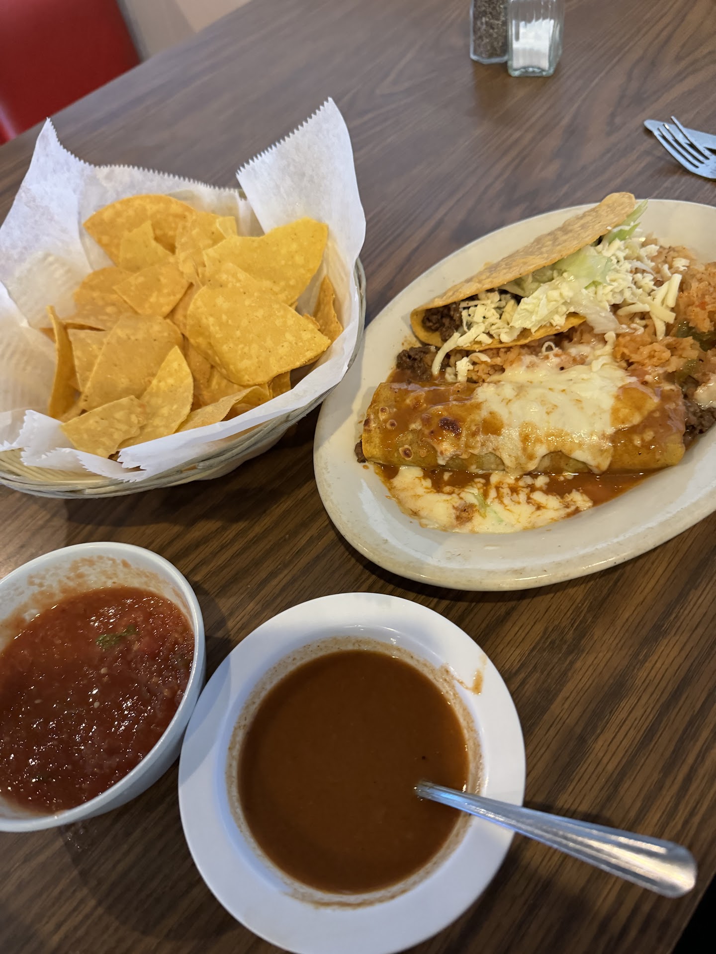 We were shown to our table and received a basket of chips and salsa when we ordered our drinks.