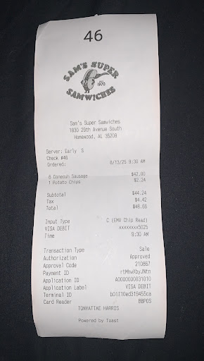 Read moreYeah idk how Sam's Super Samwiches made it on the list of top 5 best hotdog spots in Birmingham. I just tried it for lunch and I ordered a chili dog and a burger.