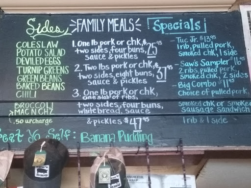 Read moreThis is the place to be for Folks that love smoked meats! All the Ribs, Chicken, Sausage are smoked the cooked on a hickory fire grill! All the veggies are fresh from the Farmer's Market! Turnip Greens, Green Beans, Baked Beans are all cooked with pork. Squash, Cole slaw, Potato Salad are yummy as well! The best is the Mac & Cheese, because it is made like Grandma's! The "Bakers" (Ginormous Baked Potatos) are available with broccoli & cheese, or meat on top! They don't do any fried foods, as everything is baked or grilled. The Banana Pudding is so yummy it will make you not want to share!!! You should call ahead if you want to feed more than 12, as a sweet lady, Hollie, takes care of all the catering orders! Believe me, if you want to impress, this is the place to order if you are Hosting a lunch!! The line is always out the door, but the staff moves it quickly! You order and pay at the register up front, then seat yourself and the staff brings out your food, by calling your order number! The Sweet Tea is super sweet, and the ice is even the good crunchy kind! You got to see this yummy cooking for yourself, as it tastes amazing straight from the grill! Ms A. Is the lady that runs the place and she makes everyone feel like you're going to eat at a friend's...