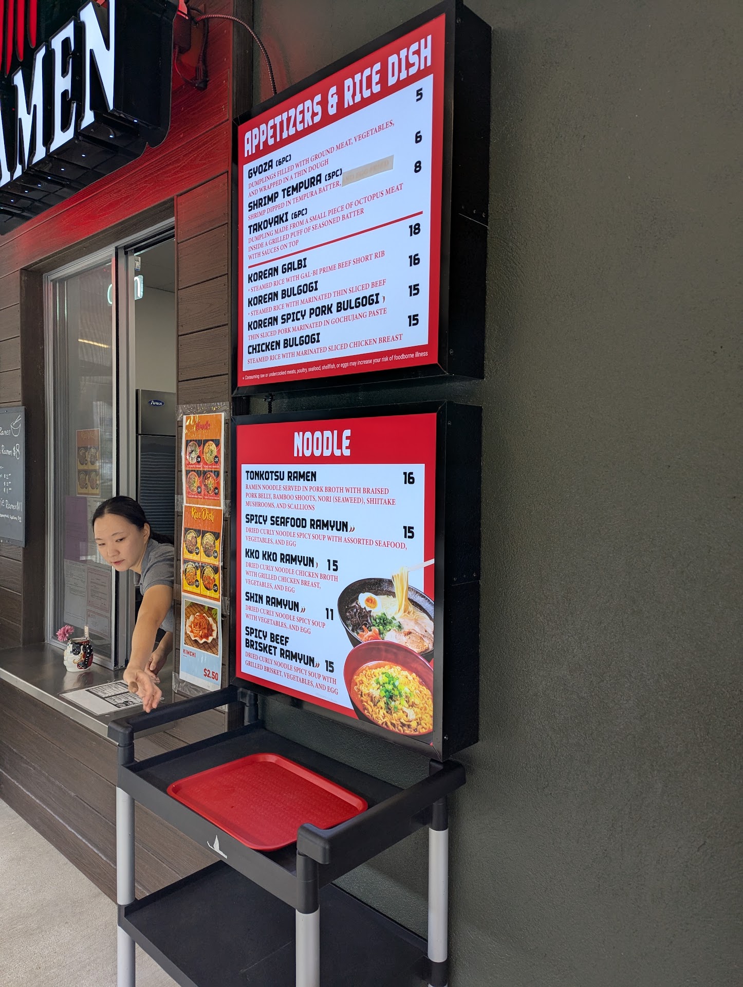 ย ย ย Read moreThe lady at the counter was super sweet and helpful with our choice making..I got the spicy seafood ramen and I must say..that was the worst bowl of ramen I ever had..the noodles were so over cooked.. it was a mouthful of melted unflavored mush..spicy..but flavorless..0/0..I DO NOT RECOMMENDโฆ$46 for an appetizer..the octopus dumplings thatโs was also not good and flavorless and two bowls of overcooked spicy...