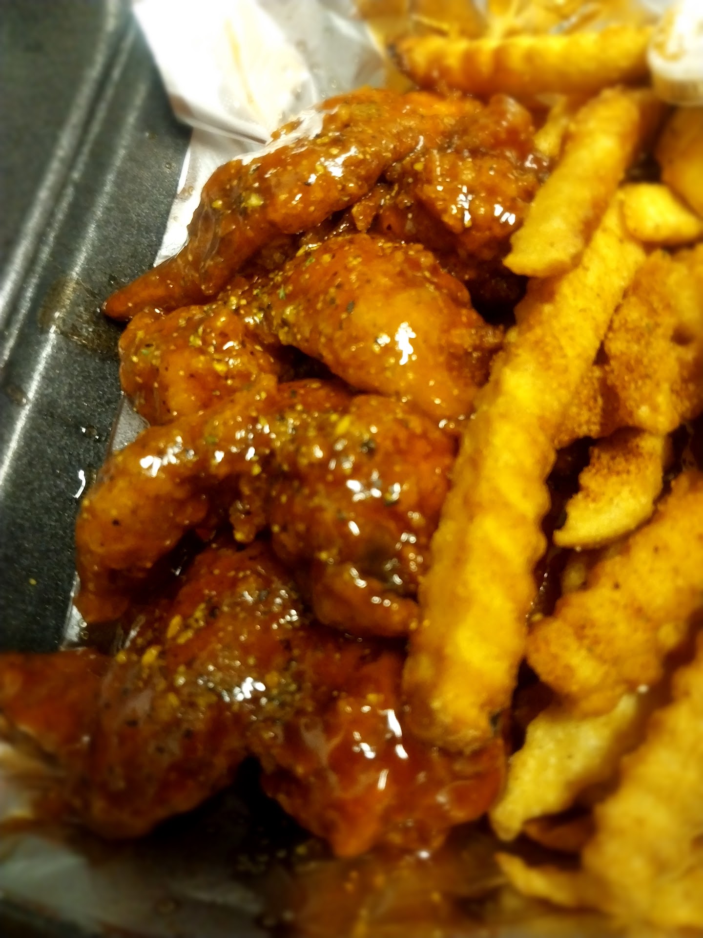 I also got Wings on the Bayou which was just whole fried wings and a sweet and spicy sauce on the side. Aye look them wings were seasoned perfectly and were definitely crunchy and not soggy somebody auntie was back there with the arm fat. I had completely forgot I even had the sauce. I ate them without it lol. 10/10