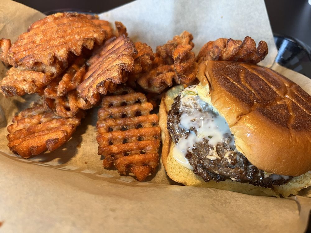 Ā Ā Ā Read moreThe atmosphere and service was great here, but the food was not so great. I got the foxtrot, the second burger on the menu, the onions on my burger were grilled not caramelized there's a difference. If you're going to advertise as caramelized onions, you should make them caramelized. The meat on the burgers were not seasoned at all, I had to put a LOT of black pepper on mine so it didn't taste like unseasoned meat and grease. There was so much grease on the burgers, it made them hard to stomach. My partners Texan sandwich was grease soaked toast, with an unseasoned pattie, and hardly any chipotle sauce the sandwich is suppose to come with. My tater tots were cooked to perfection I have to say. But for $40 for two people to eat and have a drink, this was very unsatisfactory. We definitely don't have any interest in returning unfortunately. We try something new every time we come to Birmingham, and this was a huge let down for our first,...
