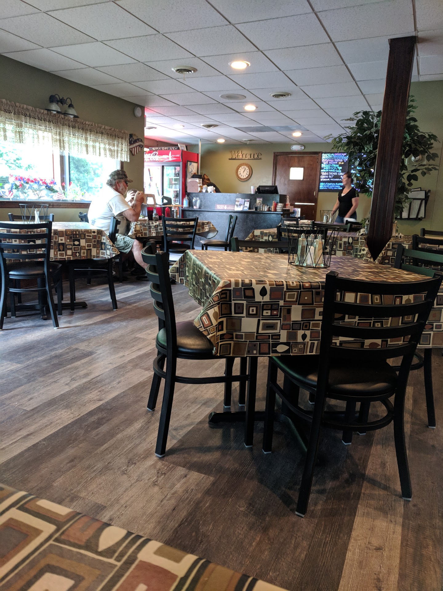 We ate lunch here. It's a quaint little place where it seems like the waitresses knew the regulars/ locals by name and those people most definitely seemed to get " extra" attention. When we walked in I had asked if the special they had yesterday was still available as a regular menu item. The hostess said she would check. We seated ourselves and it took about 10 minutes before the waitress came over to take our drink order. Interestingly enough the " regulars" were seated and immediately taken care of. I inquired again if the special was still available and she said she would check. That took another 10 minutes as she continued to go to other tables, take drink and food orders. Finally she returned to take our order and I asked a third time if it was available and she looked at me like she had no idea what I was talking about. Finally she just said that they " couldn't find it" ... I ordered the baked potato skins and my husband had a salad. It arrived very quickly. The food was good. Prices were average. She did come back over while we were eating and we asked for drink refills once which eventually arrived (after we were done eating). But again We waited for those for several minutes while She brought out other food and drink orders and stood at the tables talking. The positives were how quickly we got served and the potato skins were not just skins but rather still had the potato meat in it along with a decent amount of cheese and bacon. Nothing special here unless you're a...