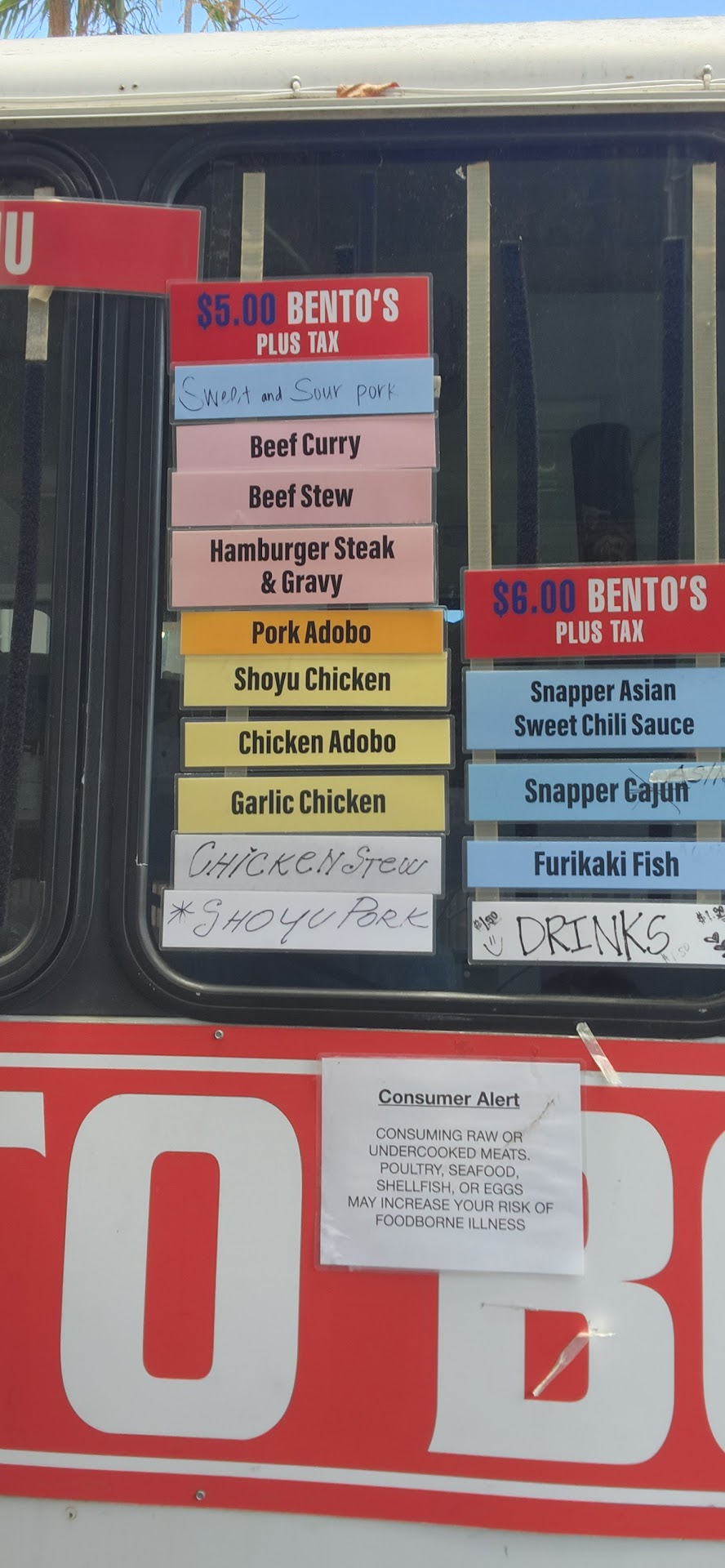 I've been to a few different areas on Oahu where they have these $5 Bento Box Lunch Wagons and by far this one is my favorite. They always have my favorite Barbecue chicken and Hamburger steak. They also have more choices than the few others I've been too. Whenever I go anywhere near that area I always stop there and pick up a few to put in my freezer for the following day. It tastes exactly the same as if you have just bought it warm that day. So it is a cheap and good option to get a bunch and put it in your freezer for a quick meal. I would say they have about 8 to 10 different options at this lunch wagon as well as soft drinks for sale. By far the #1 place for a good plate lunch at a very cheap...