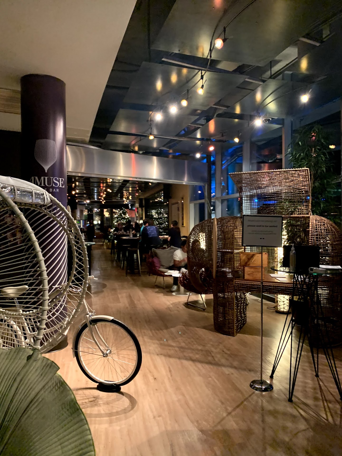 Amuse Wine Bar has been a few of my friends/colleagues go to spot to just enjoy and have a great time and I hope you will too. We recently came here for my birthday and they provided us such great service, and also went above and beyond by allowing us to migrate from the seating area overlooking the main road of the design center to the seating area inside as soon as the live music started performing. They were even so nice to provide you a birthday dessert and if you bring your own they are able to cut/slice it and place them on individual plates for everyone.
