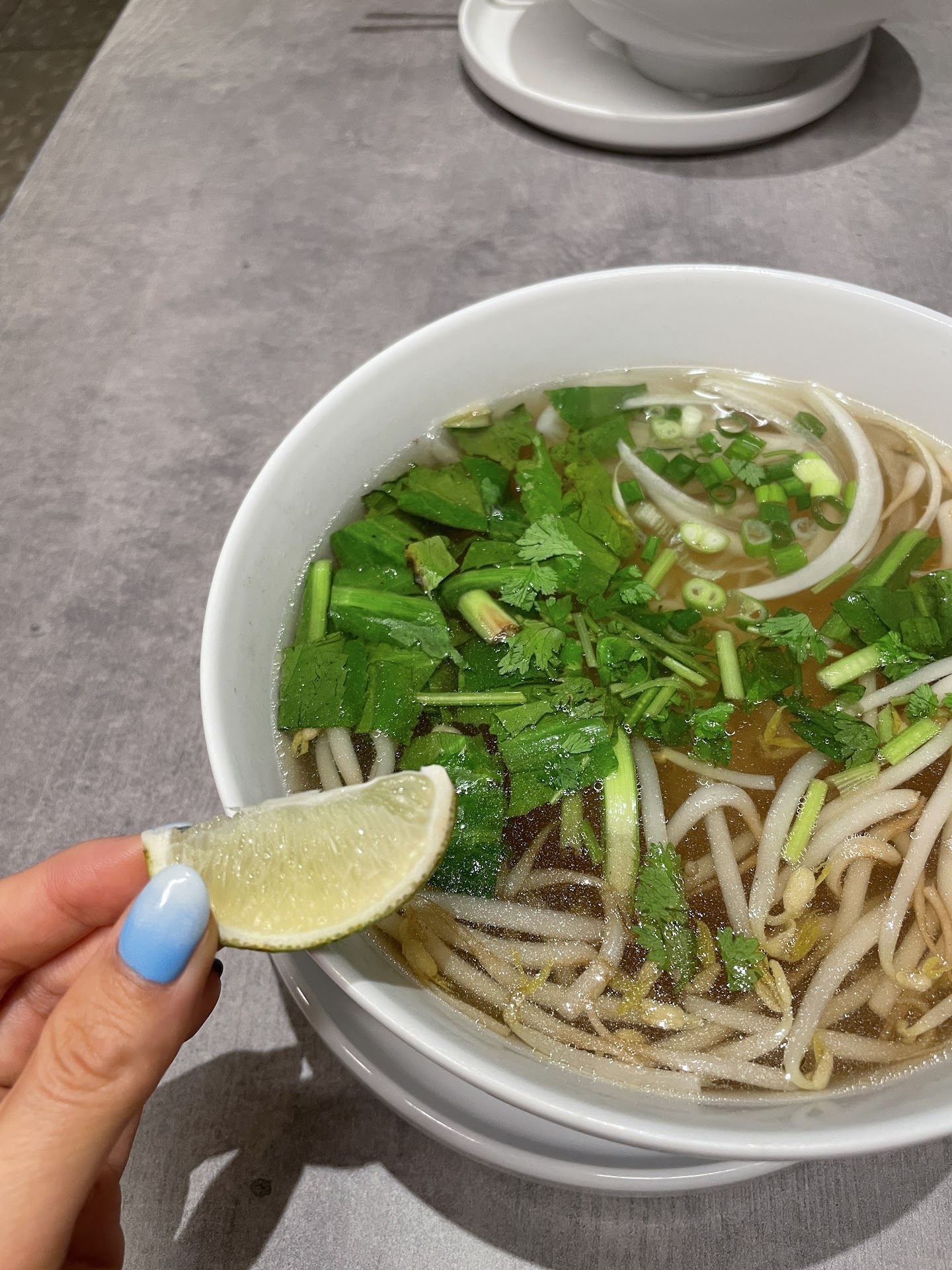 First of all pho was good flavor wise but was missing the big dish of fresh vegetables you expect with pho. All veggies that I got was what’s in the picture with a very small, dry piece of lime (granted we were one of the last customers but still)… i need more bean sprouts!!