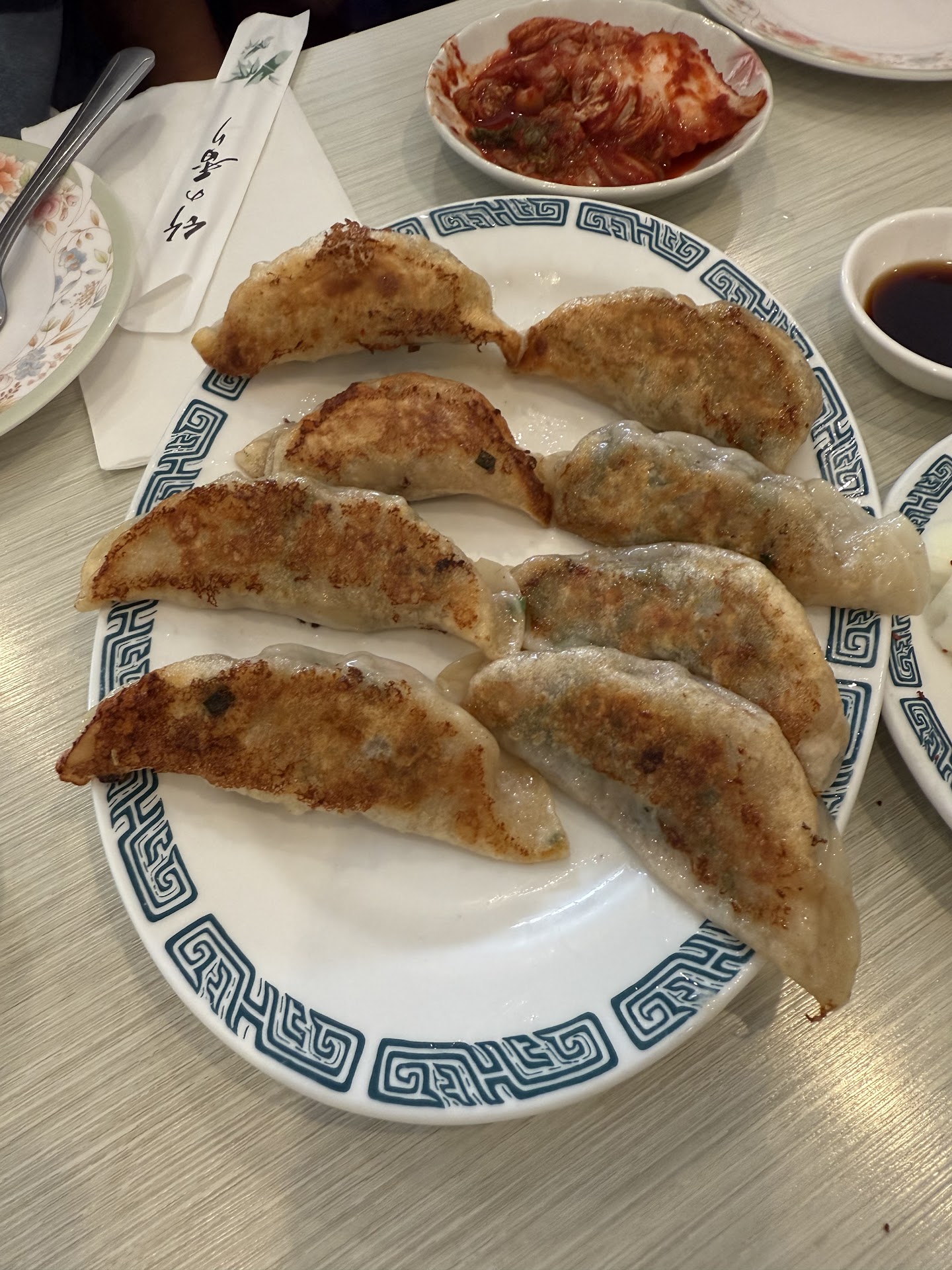 You know right away that it is Korean/Chinese when they bring you banchan of kimchi, takuan, but also have raw onions with blackbean sauce. We ordered the Seafood Jjajangmyeon, Pork and Chives, and Gan Poong Chicken based on a recommendation I saw when looking at their food pictures on Yelp. All were excellent and I would recommend to other do the same if it is your first time going there.