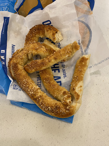 Global chain of counters dispensing sweet & savory soft pretzels with a variety of toppings & dips.