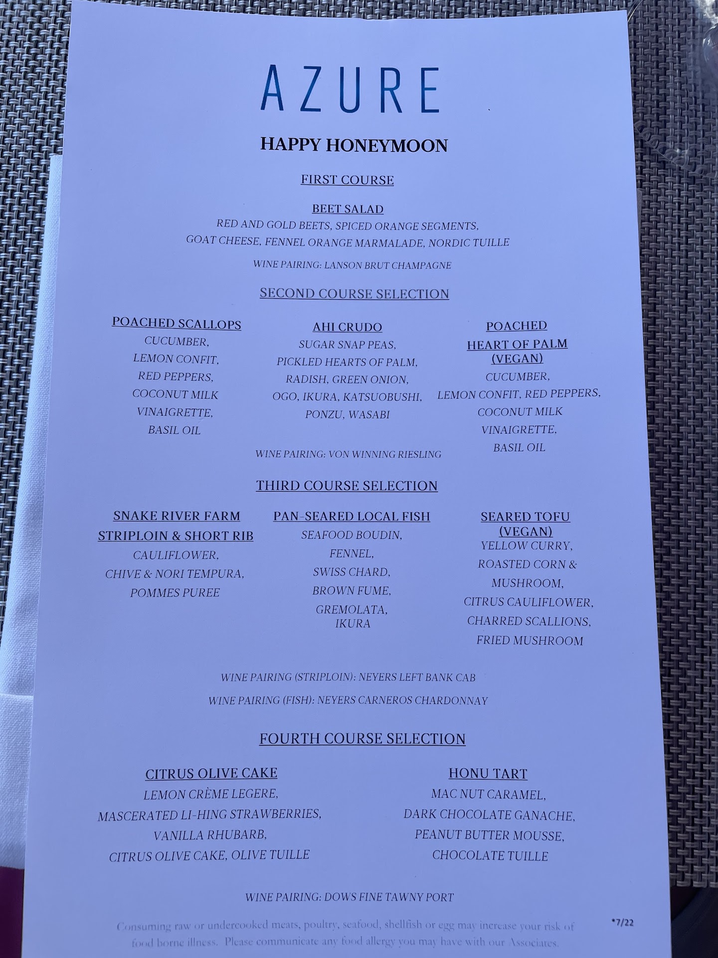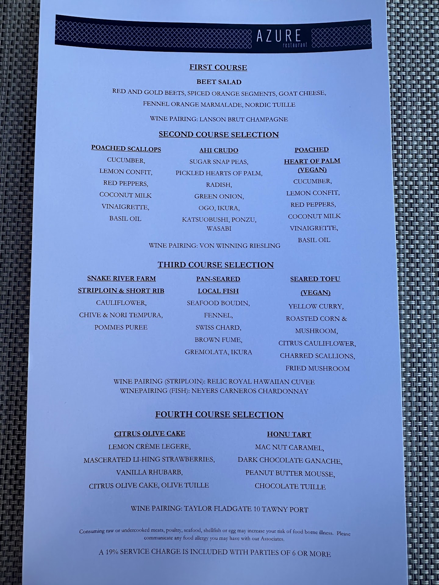 Barman, Robert, was most welcoming and accommodating and was able to make some suggestions that proved to be spot on and without a doubt his advice contributed to Azure being one of the top dining experiences I've had on Oahu.