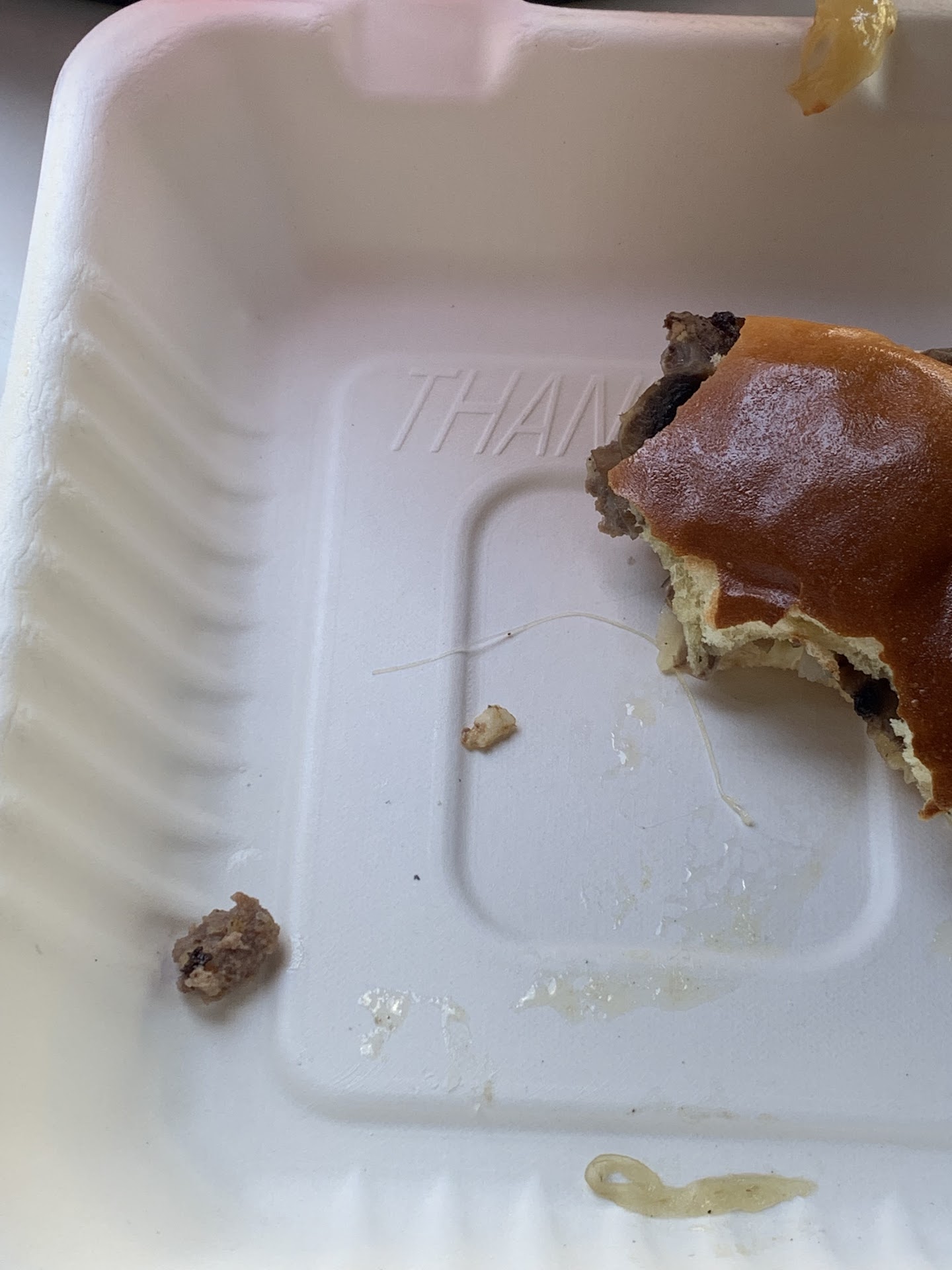The main reason for this rating was the burger. I got the mushroom and onion burger. The mushroom was cold, which is odd for a hot burger with sautéed mushrooms. I’m assuming that they weren’t recently sautéed, which is unfortunate. The big point here is I had a bone and cartilage inside my patty. Picture attached as proof. At least you know it’s real meat…? However, I quickly lost my appetite after finding the bones as I was eating the burger. This was the worst burger I’ve ever had and the first time I’ve had a bone in my burger.