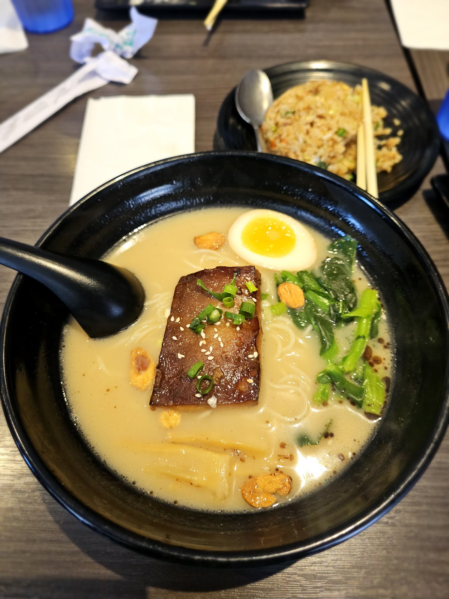 Why their curry? Flavorful, great consistency, carrots and onions inside, got a bit of kick to it, perfect balance of saltiness and sweetness. Also their oysters are well fried with a good crunch. Just so glad they got the oyster option! (5 pieces for their oyster curry). Then they got their good tonkotsu going for their ramen. I usually prefer the black garlic oil, but their plain tonkotsu is bomb. Rich and flavorful with noodles with good texture.