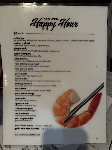 The menu is so odd. There is a blend of way too many cuisines that it’s impossible to do one well. It makes for a very confusing and random palette. Each dish ordered was mediocre, at best. Ordered the hamburger steak and the steak was so hard- as if it were days old and reheated. We came here earlier in the week and ordered the udon and it came cold. We returned later in the week and asked for the udon to be served hot and the waiter tried to tell us that we had ordered the cold udon. There are only two udons on the menu and both are meant to be served hot. Our appetizers arrived after we had already finished all of our entrees.