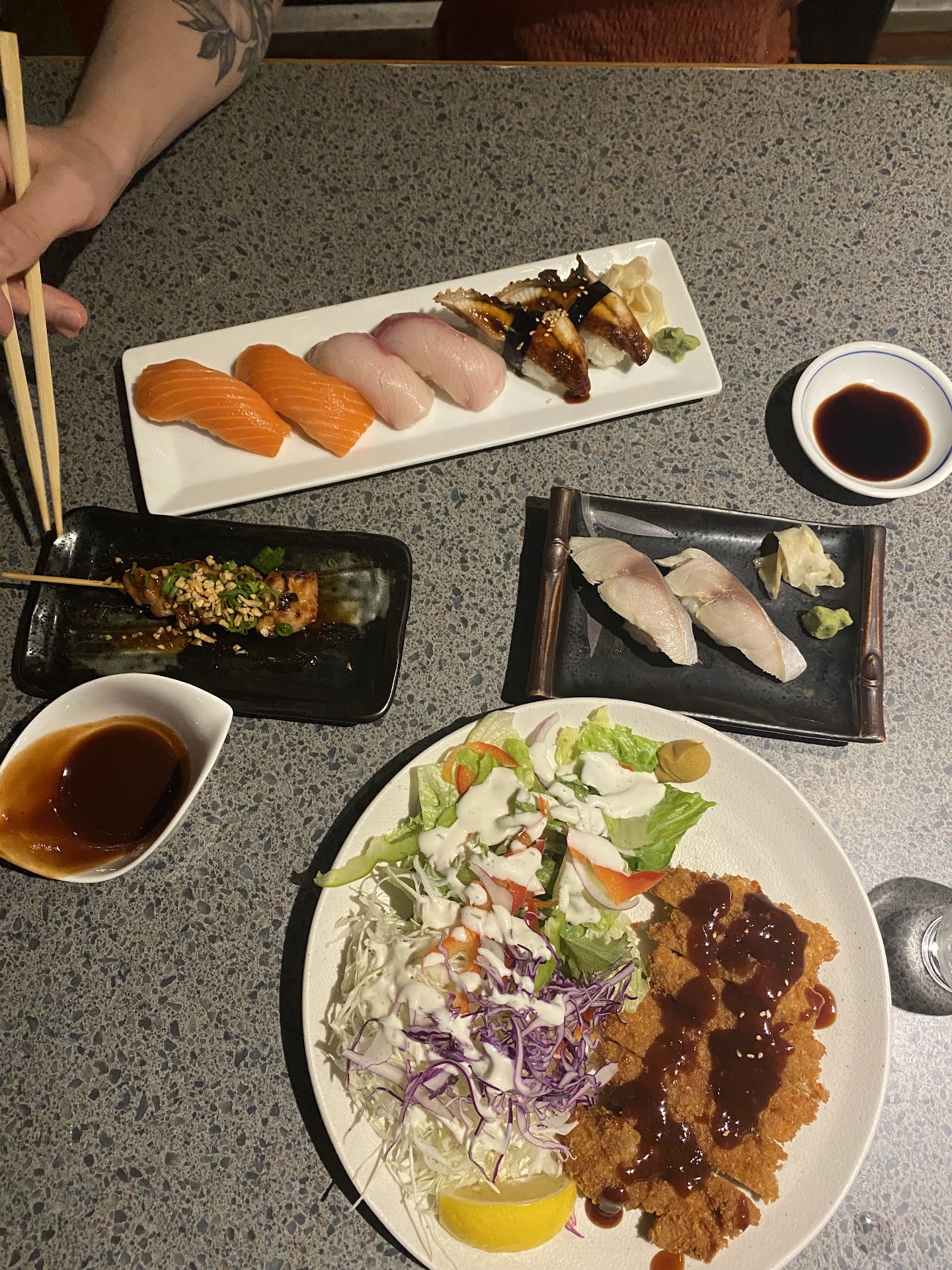 We are here in Oahu Waikiki on this Thursday right before the new year. The family had a hankering for sushi and we were at the four-story Mall. There are so many sushi restaurants here in Waikiki and this one was our second choice after the one that was within walking distance from where we were at the four-story Mall was full and unable to accommodate us for another 45 minutes. It has just the right amount of stars and it's current position with reviews which qualified it for our patronage based on my wife's standards. One of the differences we noticed about the menu selection was that unlike the sushi restaurants near our home in California, they did not appear to have a selection of baked sushi rolls like the dragon king that my family enjoys. As a result, we were in a position to choose a selection rolls that we typically would not, except for my son who gets what he always gets so that didn't change. The employees and servers were very polite and kind, and legit Japanese or at least two of them were. And we also noticed that it seemed that the folks making the sushi rolls were Japanese themselves, again, unlike in California, where many times the sushi makers are something other than Japanese. We ordered the deep fried tofu in broth which I believe is the same as agadashi tofu, and we came in after 9:00 p.m. which gave us access to their late night happy hour which goes from 9:00 p.m. to 11:00 p.m., their closing time. The tofu was made very well and the broth was very good. If you are not a fan of ginger, I would caution you on this dish as my wife says the ginger flavor across the tofu in the broth was very strong. I had the udon noodle with tempura, and this was standard fare for a bowl of udon. The rolls I sampled from my wife and daughter's plates were also good. My daughter says the fish was good, notably so. However, she did order a roll that turned out to be bigger than she thought it was, or rather she mixed it up and that has nothing to do with the restaurant. The restaurant satisfied our hankering for sushi this night. The atmosphere was medium sized for a sushi restaurant and cozy. The service was excellent, and the price was good. Relative to the idea that eating out in general is expensive. These post covet days and that eating in Waikiki in general is expensive. With that being said, I can recommend this place and I am sure they would satisfy your hankering should you have one for...