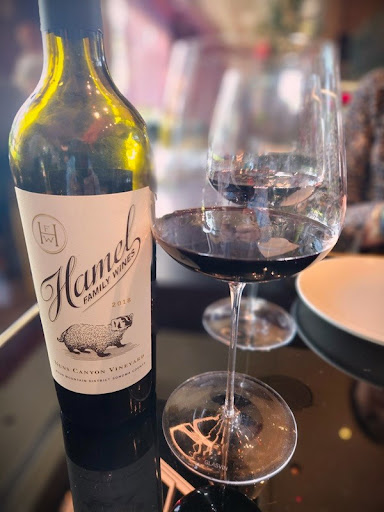 The menu comes on individual sheets of paper; one for food; the others are for cocktails, wines by the glass and a wine list (by the bottle). I selected a Heitz cabernet but our server (RJ) brought a bottle of 2018 Hamel Nuns Canyon Vineyard in Sonoma ($295) offering it to us for the price of the Heitz ($215). It was an earthy, dark ruby wine with notes of black fruit, leather and chocolate.