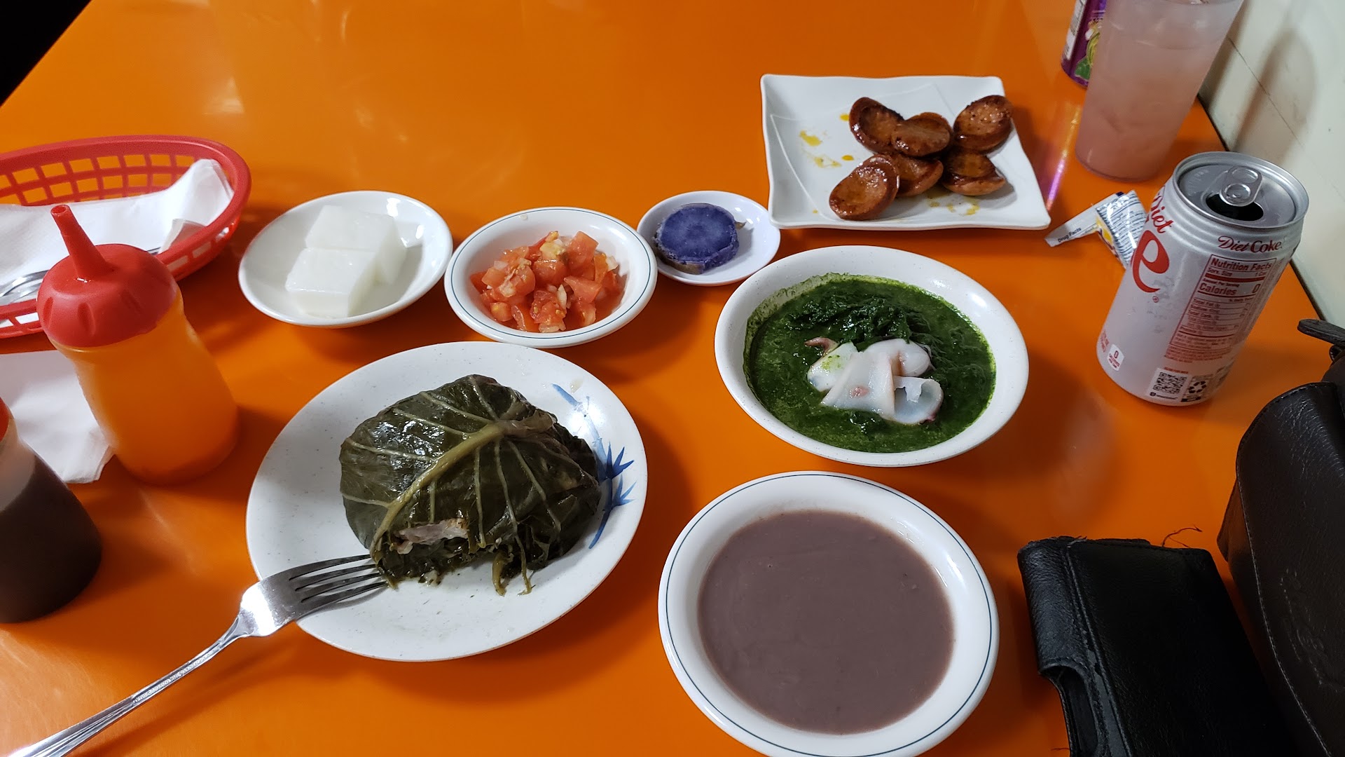 I'll start by saying I'm a British girl with a lifelong obsession with surfing and Hawaiian culture. I had been told this was the place to try for authentic Hawaiian food. So I told my hostel roommate Hanna, I'd pay if she'd let me drag her to try it out. We walked across town and made it around early afternoon. We were greeted warmly and shown to our seats and given a confusing menu. With little idea of what to order, we signalled if we could have some help. Two elderly Hawaiian gentlemen sitting in the table next to ours then leant across and started showing us what was what and telling us what to try. So we obliged. They told us about their lives in Hawaii and we tried the dishes that came out.