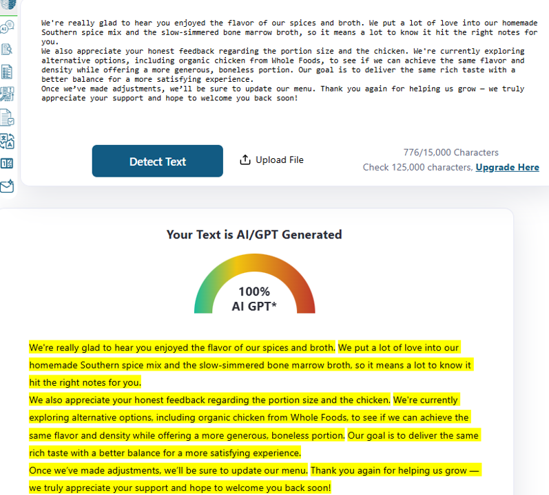 🚨UPDATE🚨 Reply with a AI generated comment does not address or improve this situation.