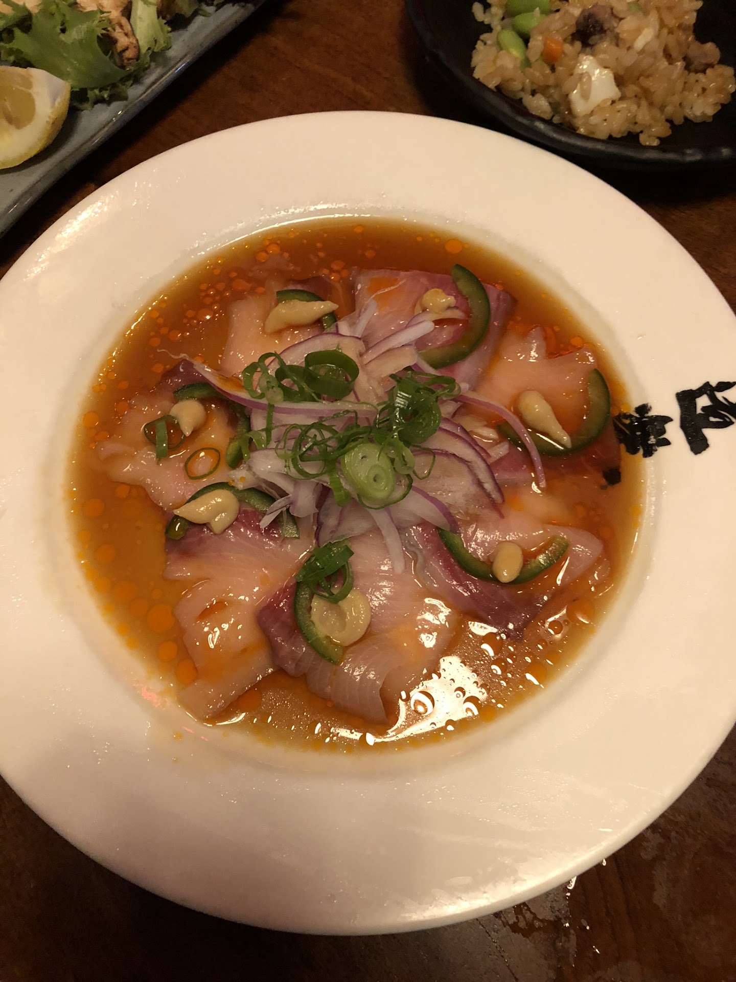 My friends ordered couple different dishes since I haven't been to this restaurant before. It seemed like a great restaurant, it was busy, everyone was having a great time. I had to use the restroom and that's where it hit me! That restroom was horrendous! I don't know any words in my vocabulary worse to describe that restroom. It was extremely unpleasant, and horrifying smell. The floor was completely wet from the piss that was overflowing from the urinals. Toilet paper everywhere and facets that wouldn't shut off. It was running the whole time I was at that restaurant. Seemed to me that restroom was not clean for months!