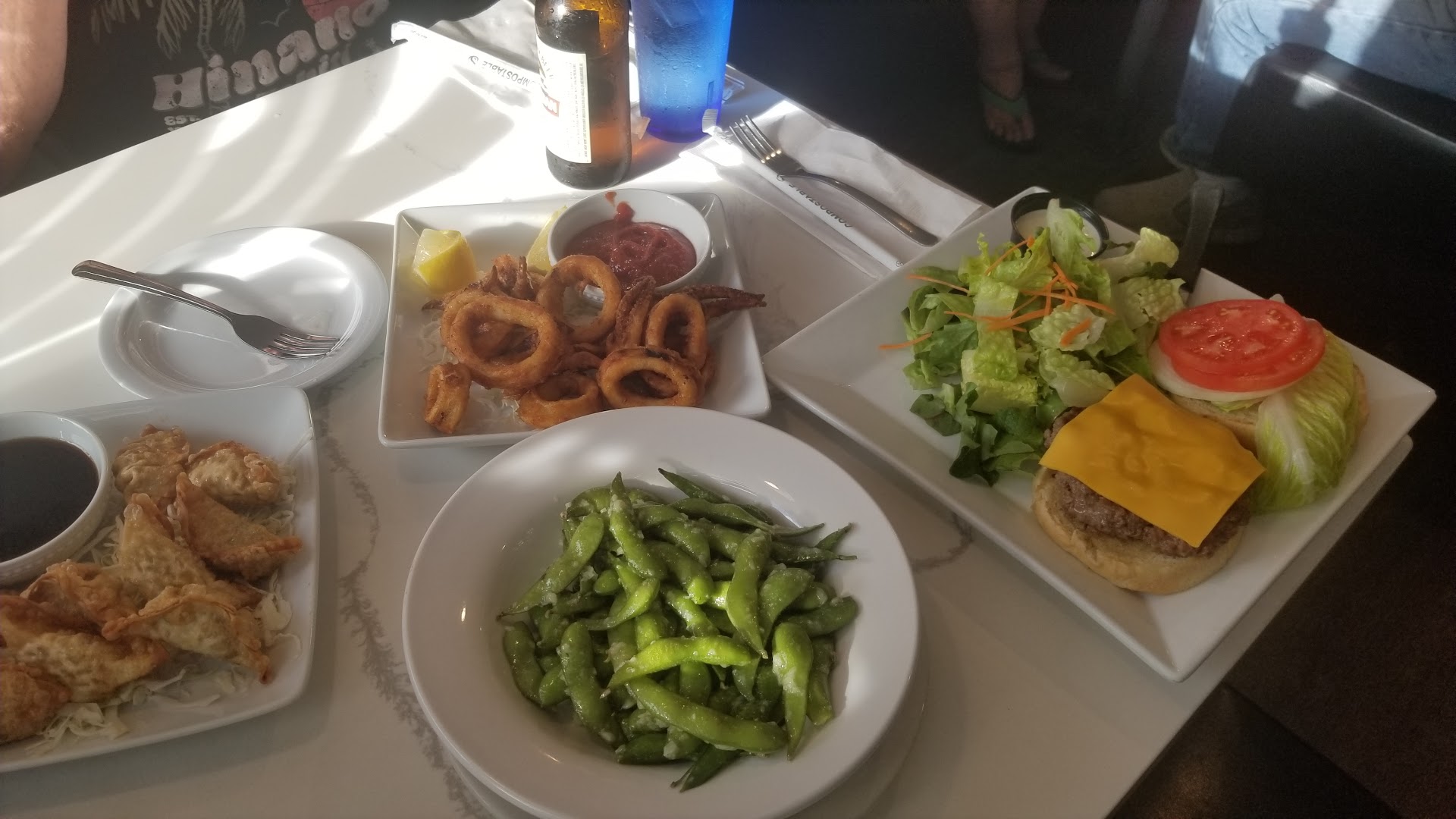 We were seated quickly and in time to still benefit from their happy hour specials. The surprise standout was their Calamari. It was cooked well and the breading was flavorful. The size of the squid was also pretty decent. The Saimin was pretty average, not a standout like at other places. And the hamburger was the same, pretty average, with nothing to make it stand out as either good or bad.