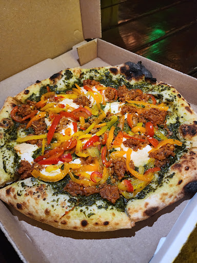 My go to is the Pesto Royale, which is absolutely delicious. My 2nd go to is the Paradiso. The "proteins" on each are enjoyable and aren't offputting like other vegan proteins. I really enjoy the authentic coal fire taste, which can only be achieved with their professional oven. The Ceasar salad is delicious, but is kind of small for the portion size. Cannolis are pretty big, and both pistachio and chocolate chip are tasty. The outdoor seating area is preferred, as it can get pretty toasty in their newer indoor dining area.