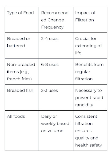 Equipment damage: Old oil can leave behind residue that can damage the fryer and its components.