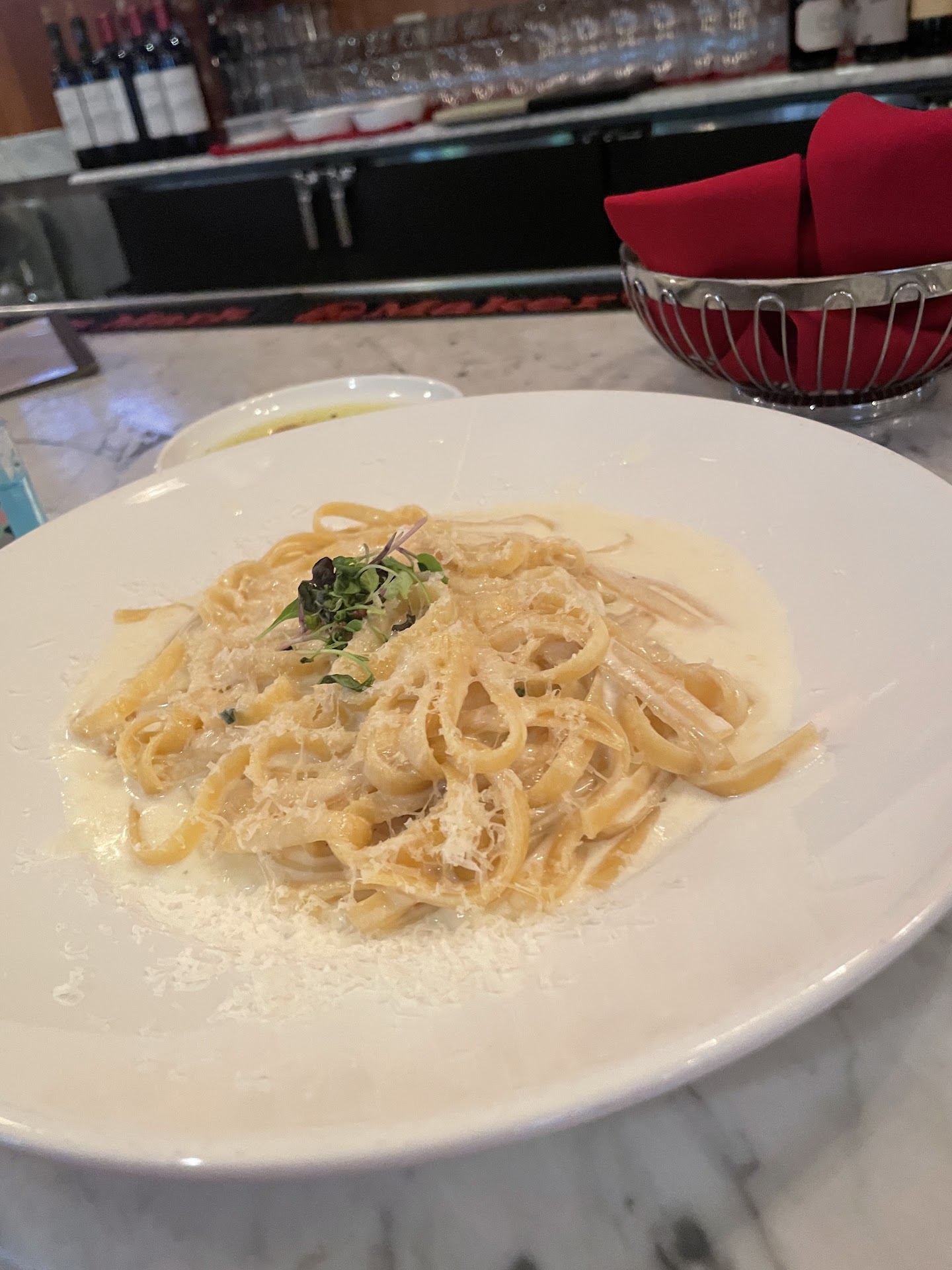 Read moreI had to take one star off (wish I could give 4 1/2 stars) as my husband and son said their chicken parm was tasty but chewy. They felt steak knives would have been helpful as it was difficult to cut. That would not deter us from returning (could order something different from the extensive menu). Also, my husband ordered bruschetta appetizer assuming it was typical bruschetta. Had he read the menu he would have seen it was a trio- Truffle Mushroom, Tomato & Burrata, Ricotta, Honey, Prosciutto Di Parma and Thyme. Although it wasn’t as expected it was very good. Prices were middle of the road - not bad for a resort. Portions were generous. I chose an Italian restaurant because I knew my family was tired of steak or seafood. I ended up enjoying the most. My Spaghetti Alla Pescatora was delicious - ordered with red sauce and asked if they could make it a little spicy. It was perfect. Included shrimp, scallops, muscles, calamari, and catch of the day which was Mahi Mahi. I rarely order dessert but my husband who never eats it suggested we check the menu. I was prepared to say no until our waiter mentioned the chocolate creme brûlée. It was amazing. Even my husband and son tasted and agreed as our amazing server brought extra spoons. The restaurant is located upstairs (above Round Table Pizza). Seating on outside patio available, inside is larger than it looks, spacious with nice booths and tables. Much m nicer inside than expected. We sat at a table near window - enough of a breeze to be perfect. Comfortable, lovely atmosphere, Our server Michael was very nice, professional, attentive. Food and drinks came quickly but we never...