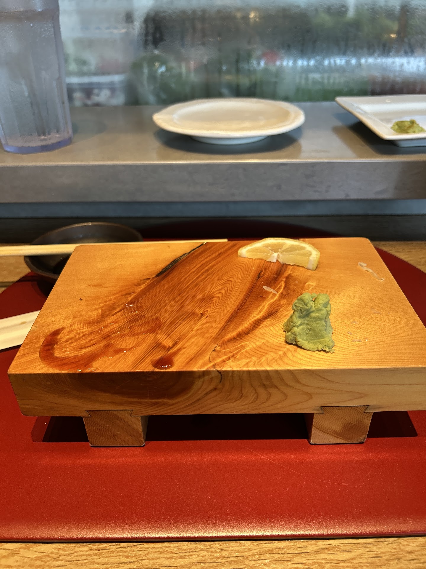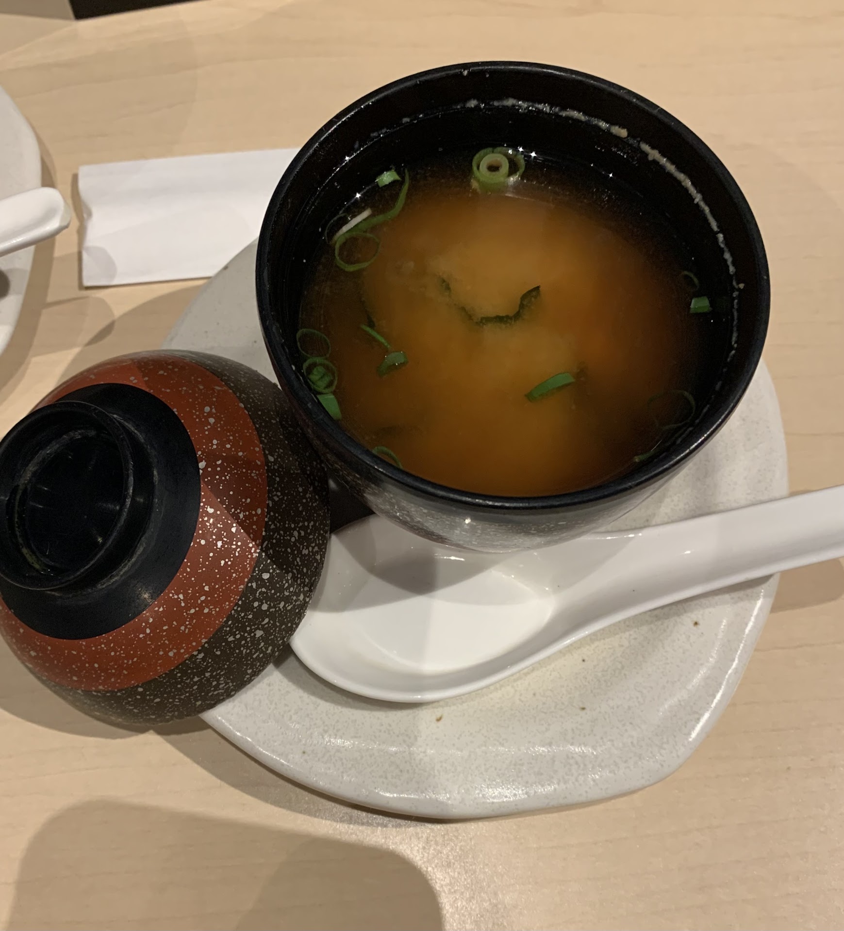 The Food: For appetizers, we got the Cold Tofu that was topped with fish flakes. For sushi, we got the $80 Waikiki Bridge and an additional Flying Dragon Roll. We ordered green tea for drinks, as well as some miso soup. The Cold Tofu was a nice starter. The sashimi from the bridge was very fresh and sushi tasty; the dragon roll was exemplary! This was the first time I had fresh radish (?) served with sushi. The wasabi really elevated the experience (it was not anything low quality and not fresh). The green tea was also nice. I believe the miso soup to be over priced, especially for its volume, but it tasted fine.